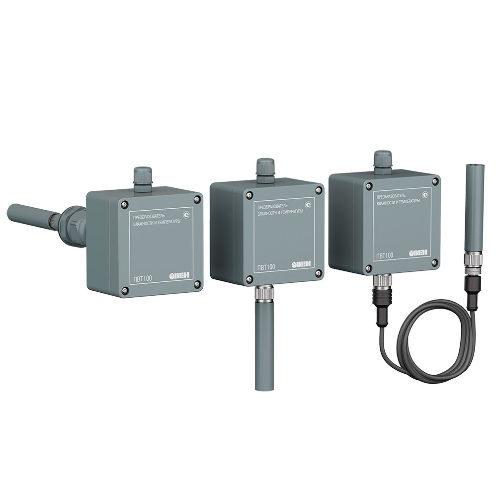 Промышленный датчик влажности и температуры ОВЕН ПВТ100 предназначен для непрерывного преобразования относительной влажности и температуры неагрессивного газа в два унифицированных выходных сигнала: аналоговый 4…20 мА и цифровой Modbus RTU по интерфейсу RS-485.