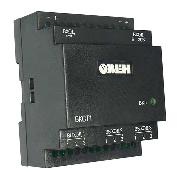 Блок БКСТ1 преобразует выходной сигнал регулятора для управления симисторами или тиристорами, работающими с активной нагрузкой (главным образом, ТЭНами). Предназначен для совместной работы с приборами , имеющими выходы «К», «Р», «Т» (или другими управляющими системами с аналогичными параметрами).