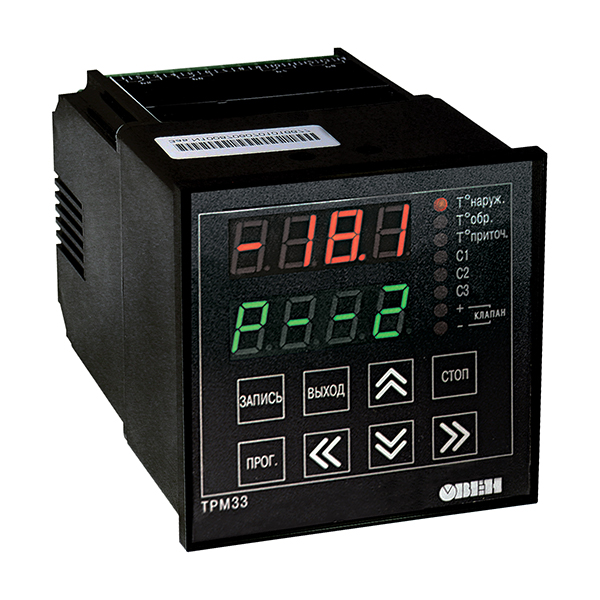 Прибор ТРМ33 предназначен для регулирования температуры воздуха в помещениях, оборудованных системой приточной вентиляции с водяным калорифером.