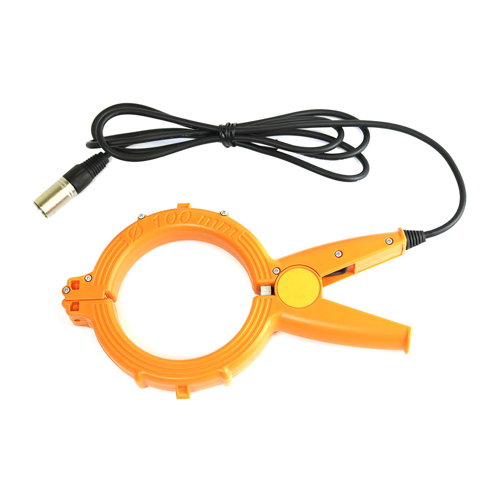 - Обхватить до смыкания полуколец индукционными клещами кабель.