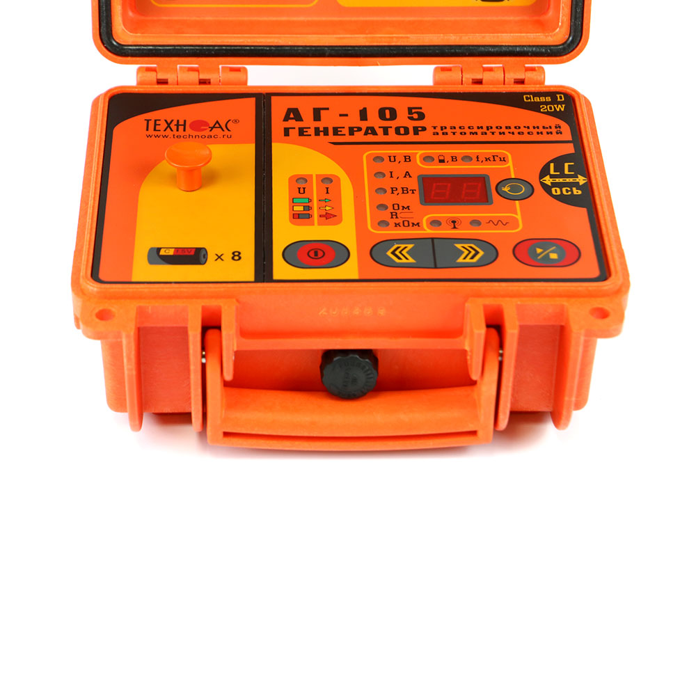 Генератор трассировочный импульсный автоматический АГ-105 предназначен для создания распространяющихся сигналов (колебаний) в трассах скрытых коммуникаций при активном методе трассопоиска. Прибор создает в исследуемой коммуникации переменный синусоидальный ток (постоянно или кратковременными посылками) необходимый для определения ее местоположения.