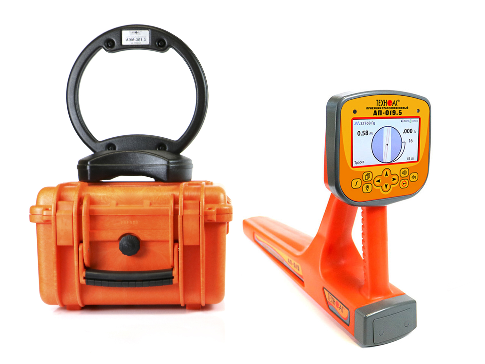 В составе комплекта приемник в виде моноблока с цветным ЖК дисплеем, на который выводится изображение трассы и в автоматическом режиме происходит расчет глубины залегания коммуникации до 30 м, а также величины тока в линии и самый мощный мультичастотный генератор в линейке ТЕХНО-АС, с дальностью работы до 10 км.