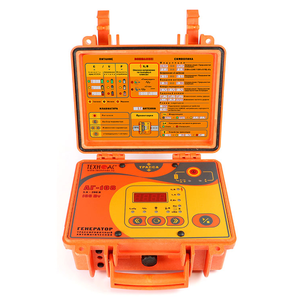 Комплект оснащен новейшим компактным автономным генератором АГ-108 со встроенными элементами питания, дисплеем и встроенной индукционной антенной, для трассировки коммуникации бесконтактным способом.