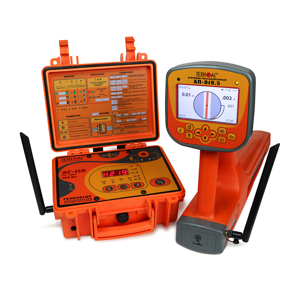 Трассопоисковый комплект предназначен для точного определения местоположения и глубины залегания подземных коммуникаций (силовые и сигнальные кабельные линии, армированные оптоволоконные линии, трубопроводы из электропроводных материалов), поиска неисправностей кабельных линий, а также позволяет в кратчайший срок и с большой надежностью проводить обследование местности перед производством земляных работ и предотвращать повреждение инженерных коммуникаций. Прибор оснащен модулем беспроводной связи LoRa для удаленного управления трассировочным генератором на расстоянии до 1 километра (при использовании ретранслятора). Это позволяет сократить временные затраты на трассировку коммуникаций в 2 раза.