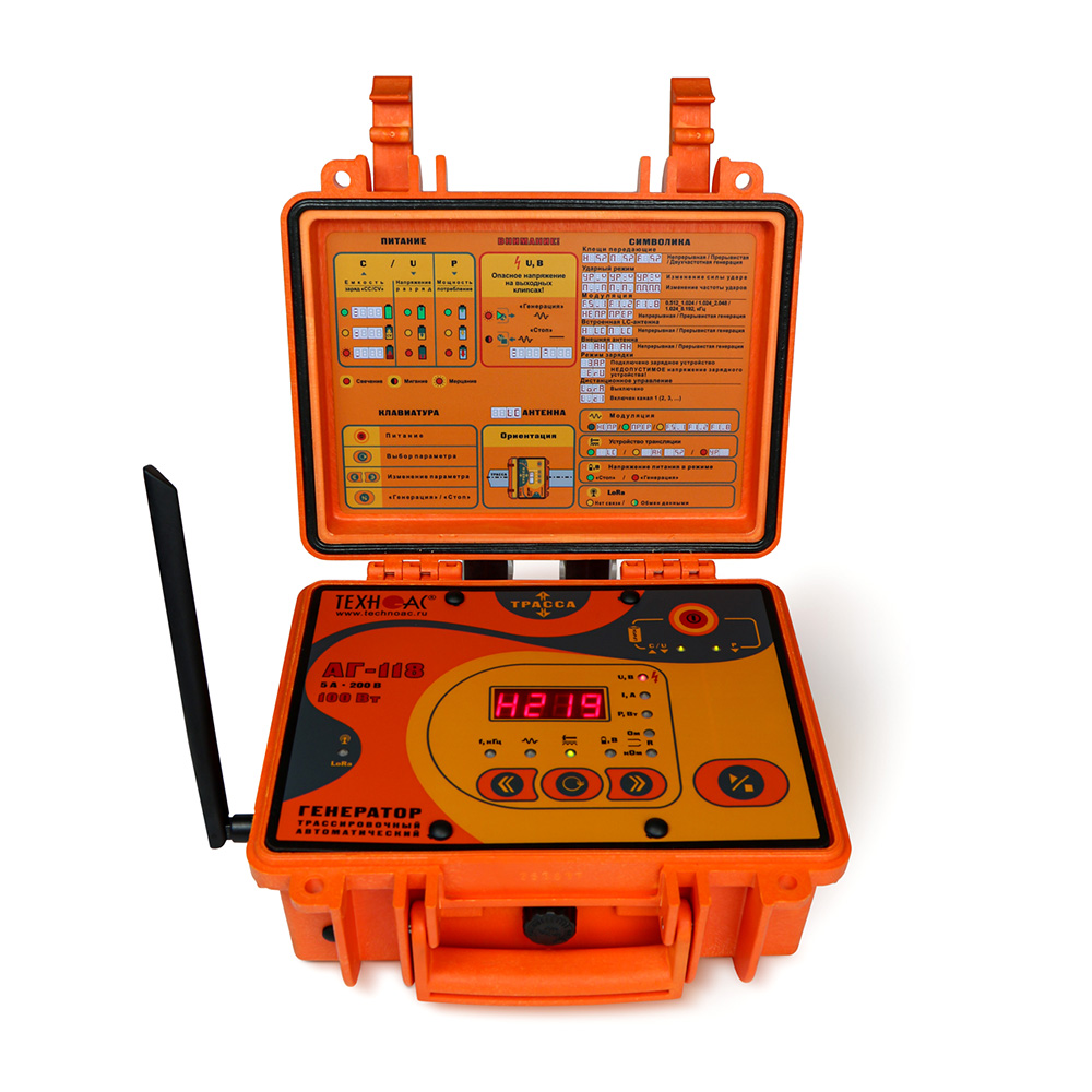 Комплект оснащен новейшим компактным автономным генератором АГ-118 со встроенными элементами питания, беспроводным модулем LoRa, дисплеем и встроенной индукционной антенной, для трассировки коммуникации бесконтактным способом.