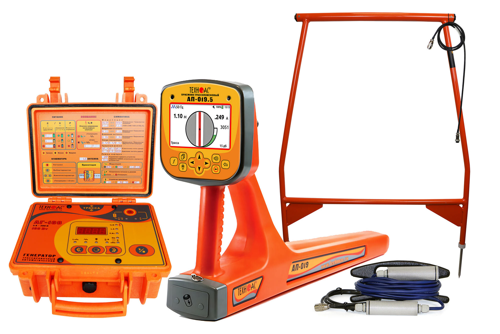 Трассопоисковый комплект для поиска подземных коммуникаций (кабельных линий, металлических трубопроводов, и прочих коммуникаций из токопроводящих материалов) и локализации повреждений на них.