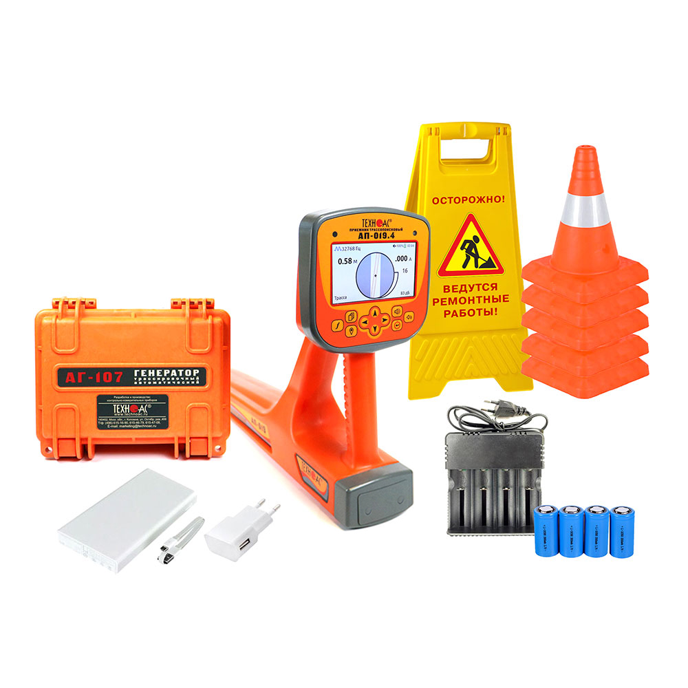 Комплект оснащен новейшим компактным автономным генератором АГ-107 со встроенными элементами питания, дисплеем и встроенной индукционной антенной, для трассировки коммуникации бесконтактным способом.