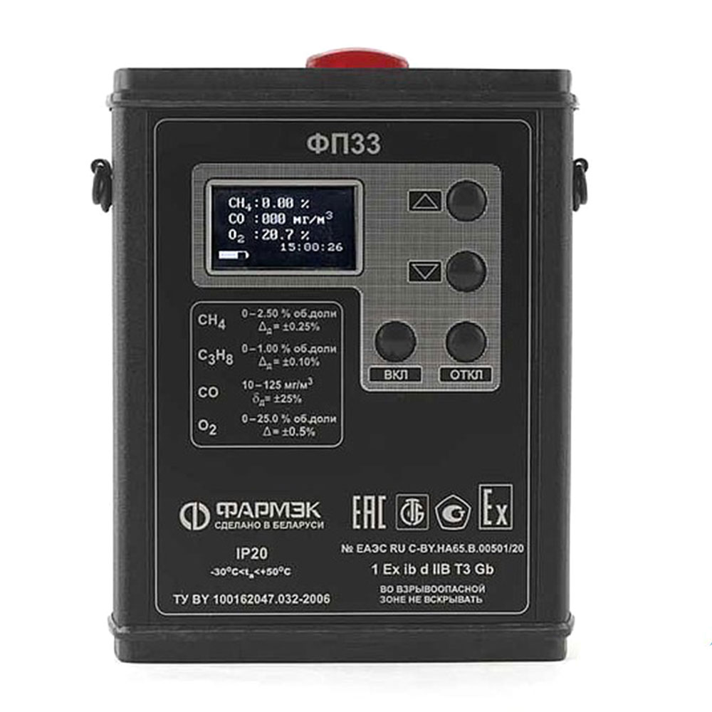 Мультигазовый (многокомпонентный) переносной газоанализатор взрывозащищенного исполнения, предназначен для одновременного измерения объемной доли горючих газов метана (СН4) или пропана (С3Н8), кислорода (О2) и угарного газа (СО) с выдачей звуковой и световой сигнализации при превышении установленных пороговых значений объемной доли газов.