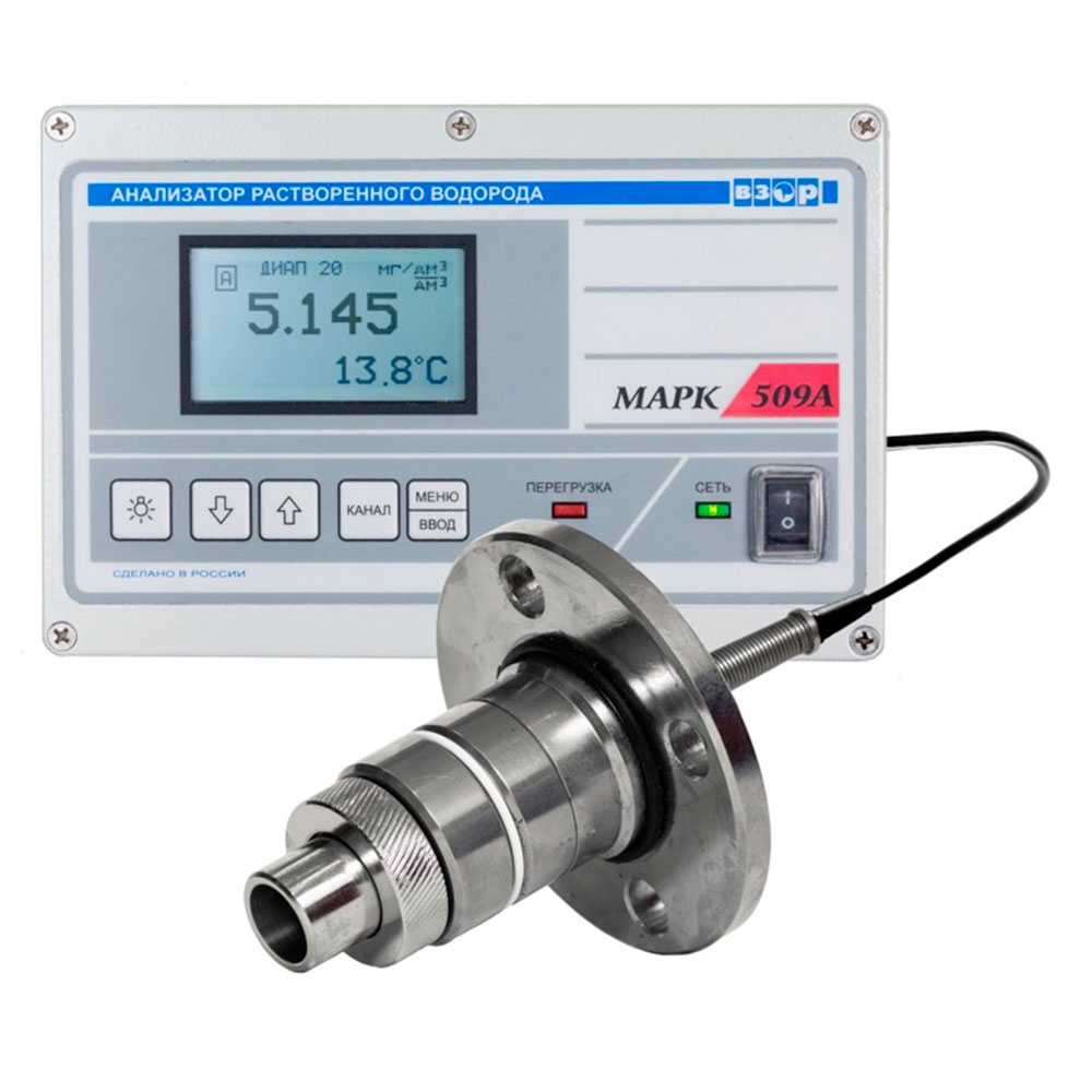 Непрерывное измерение концентрации растворенного водорода (КРВ) и температуры водных сред с избыточным гидростатическим давлением до 20 МПа.