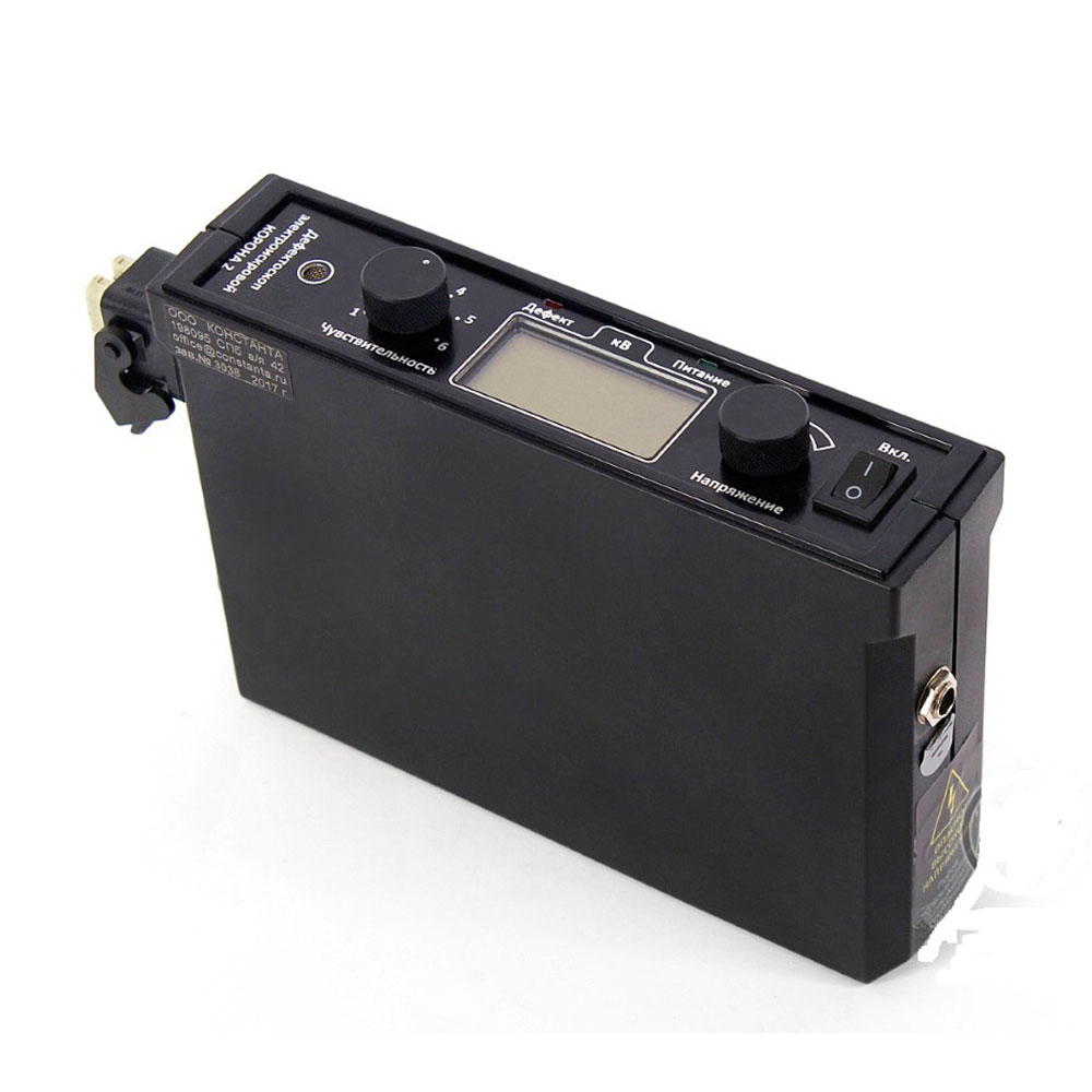 Дефектоскоп предназначен для выявления трещин, пористости, недопустимых утонений и других нарушений сплошности внутренних и внешних защитных покрытий металлических изделий приложением импульсного высоковольтного напряжения и фиксацией электрического пробоя в местах нарушения сплошности.