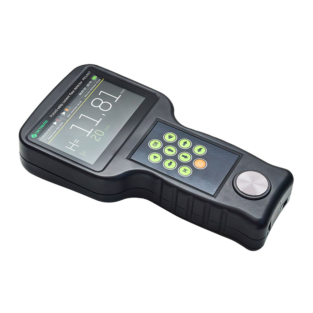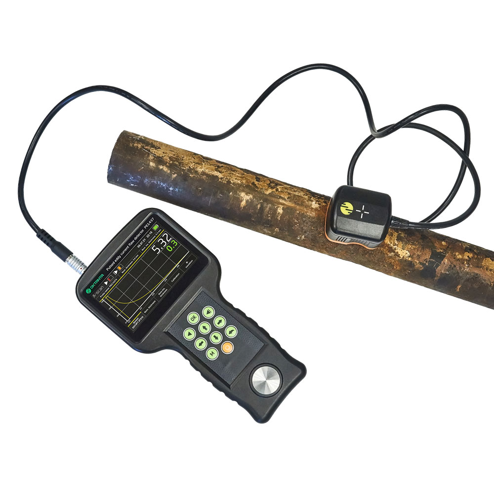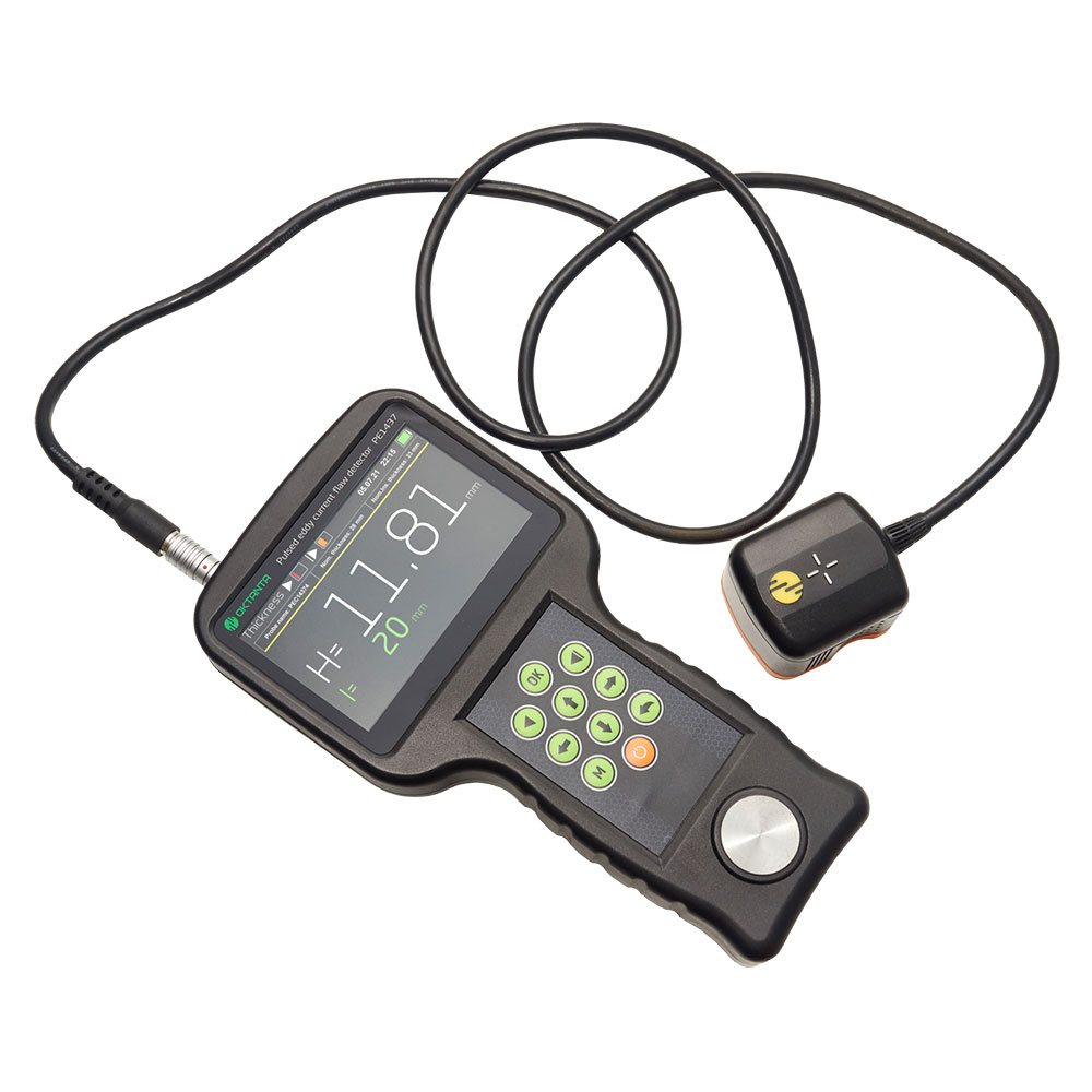 Импульсный вихретоковый дефектоскоп PE1437 измеряет усреднённую толщину металла под датчиком. Пользователю необходимо задать известную толщину объекта контроля в одной точке для калибровки прибора, и после этого прибор будет измерять все остальные точки относительно точки калибровки. Подходит для поиска общей площадной коррозии и крупной язвенной коррозии, расположенной как на внешней поверхности металла, так и на внутренней.