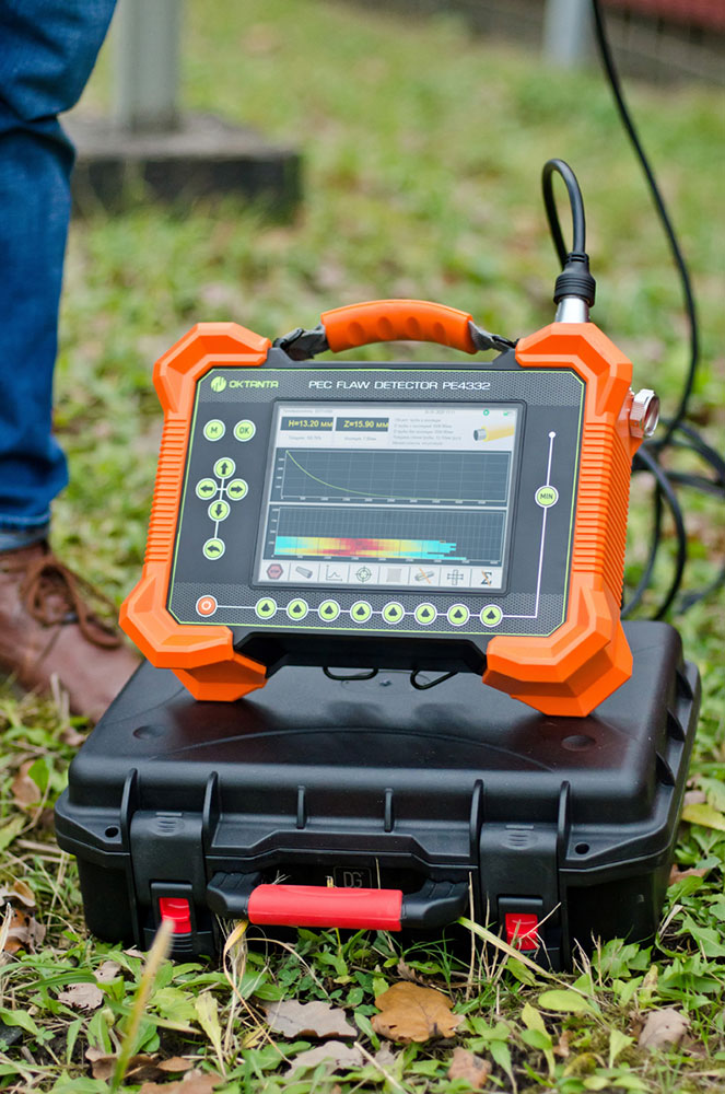 Импульсный вихретоковый дефектоскоп PE4332 предназначен для поиска коррозии металла под изоляцией без демонтажа последней. Прибор позволяет производить диагностику таких объектов как: трубопроводы с изоляцией, вертикальные и горизонтальные резервуары с изоляцией, опоры нефтяных платформ и опоры резервуаров с СПГ, корабельные корпуса с толстым лакокрасочным или эпоксидным покрытием. Прибор позволяет производить диагностику таких объектов без предварительной подготовки поверхности, без необходимости удалять и восстанавливать изоляционное покрытие. В качестве изоляции может выступать любое непроводящее покрытие такое как: минеральная вата, полиуретан, пластик, краска, воздух. В качестве материала для кожуха изоляции может выступать оцинкованная сталь или алюминий.