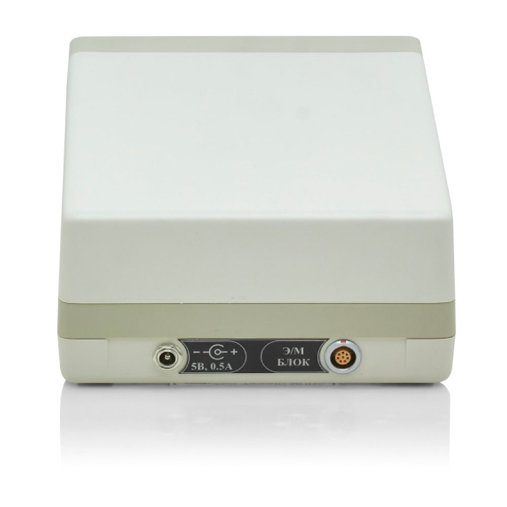 Прибор состоит из двух основных блоков: электронного и электромеханического, в который заведен вихретоковый преобразователь трансформаторного типа. Контролируемые изделия (ролики подшипников) поступают через входной лоток в электромеханический блок дефектоскопа, где последовательно перемещаются и попадают под прижимные ролики держателя накладного преобразователя. Прижимной механизм настраивается под каждый типоразмер роликов, так чтобы обеспечить плотный контакт с криволинейной поверхностью и зафиксировать наконечник преобразователя на требуемом расстоянии от нее.