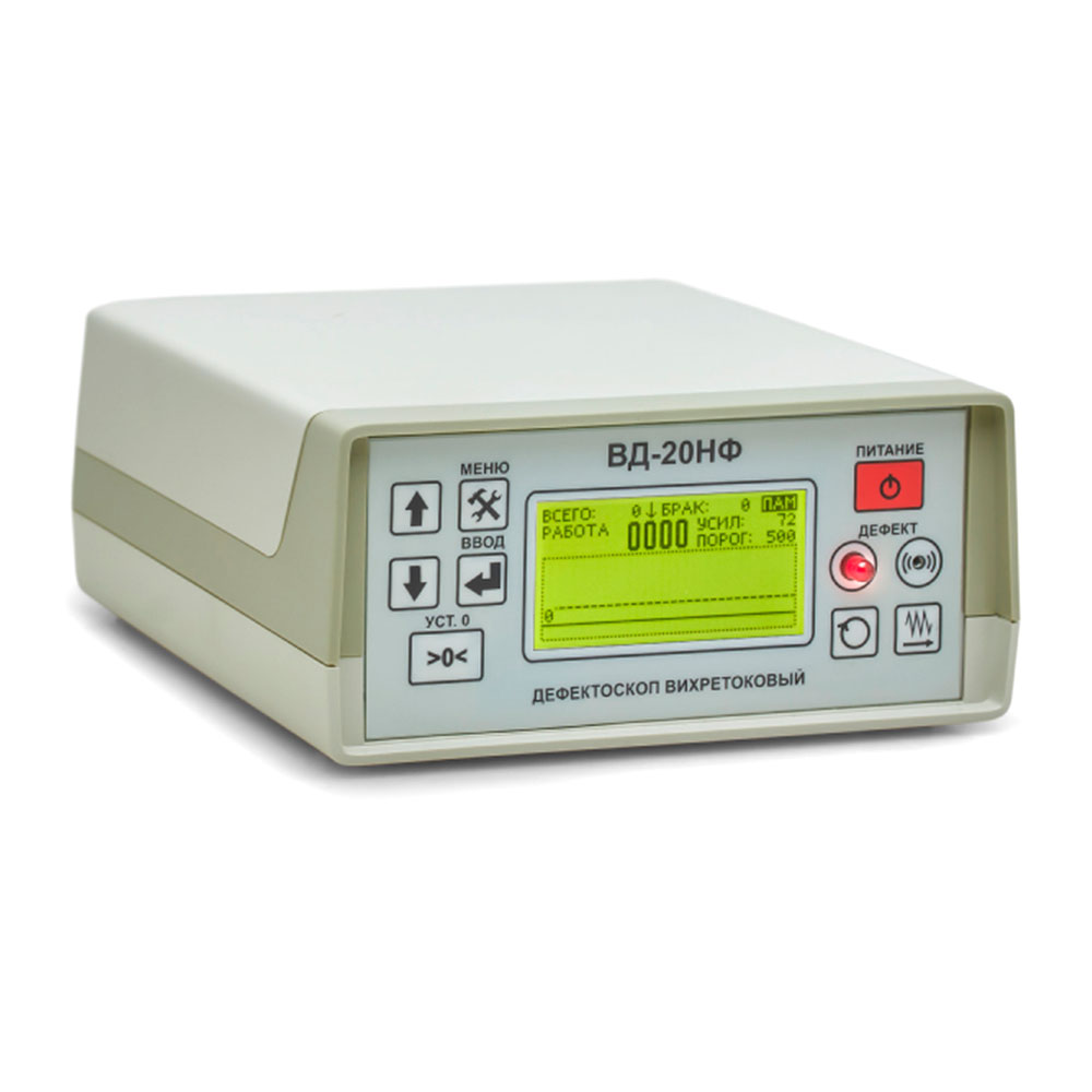 Вихретоковый дефектоскоп ВД-20НФ предназначен для проведения неразрушающего контроля и автоматической разбраковки роликов подшипников диаметром от 18 до 80 мм и длиной от 18 до 60 мм. Прибор позволяет обнаруживать дефекты сплошности типа усталостных трещин на поверхности катания роликов цилиндрической и сферической формы в том числе роликов буксовых подшипников, а также роликов с контактом, применяемых в узлах вагонного, мотор-вагонного, тягово-подвижного, а также подвижного состава специального назначения. Дефектоскоп ВД-20НФ может с одинаковым успехом использоваться как в условиях заводских лабораторий, так и в цехах локомотивных, вагонных, мотор-вагонных депо и других ремонтных предприятий, относящихся к железнодорожному транспорту.
