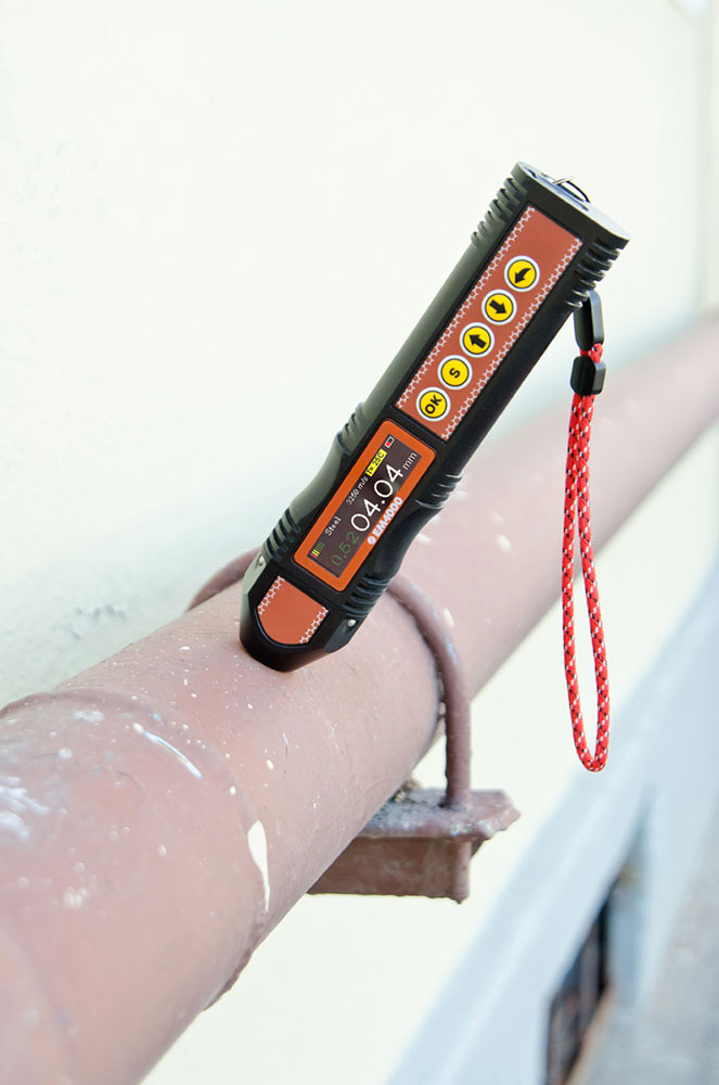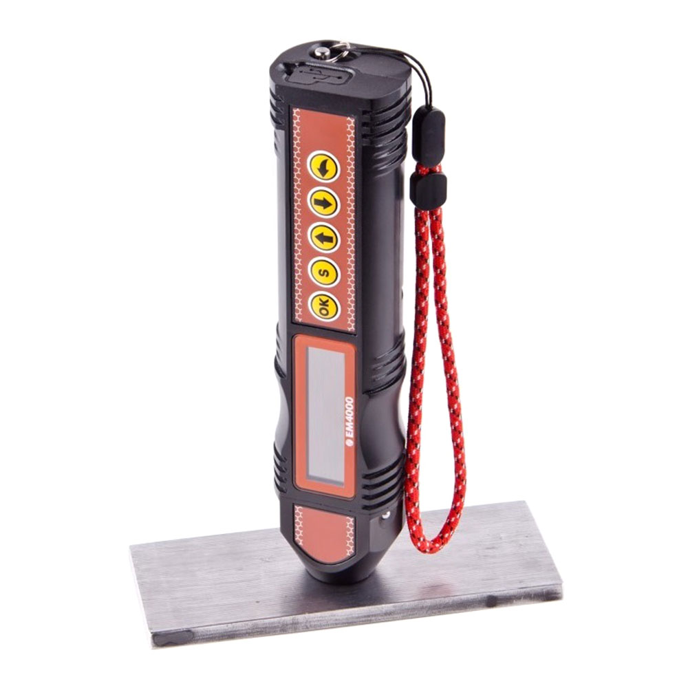 ЭМА-толщиномер EM4000 предназначен для проведения толщинометрии стальных труб, листового проката, прутов, и других изделий из стали, алюминия и других металлов с рабочим зазором между датчиком и металлом до 3-х мм. Для работы ЭМА толщиномера не требуется предварительная подготовка поверхности, не требуется наличие контактной жидкости. В качестве зазора может выступать грязь, слой ржавчины, слой солевых отложений или другое непроводящее покрытие (краска, лак, эмаль, пластик и т.д.). Помимо измерения толщины металла, EM4000 позволяет измерить толщину непроводящего покрытия на металле.