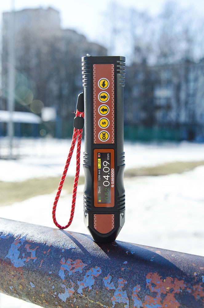 Благодаря специальному датчику, толщиномер EM4000 может использоваться для проведения толщинометрии на объектах нагретых до 750 градусов Цельсия. На показания прибора слабо влияет перекос, в отличии от традиционных толщиномеров с пьезопреобразователями, которые требуют фиксации датчика в определённом положении. Толщиномер EM4000 имеет цветной дисплей, защищённый ударопрочным стеклом. Прибор использует специальный алгоритм обработки данных, который позволяет корректно измерять толщину при наличии мешающих факторов, таких как анизотропия металла, наличие нескольких отражателей, наличие внешних помех. Разработанный нашими специалистами алгоритм позволяет снизить человеческий фактор и упростить интерфейс прибора.
