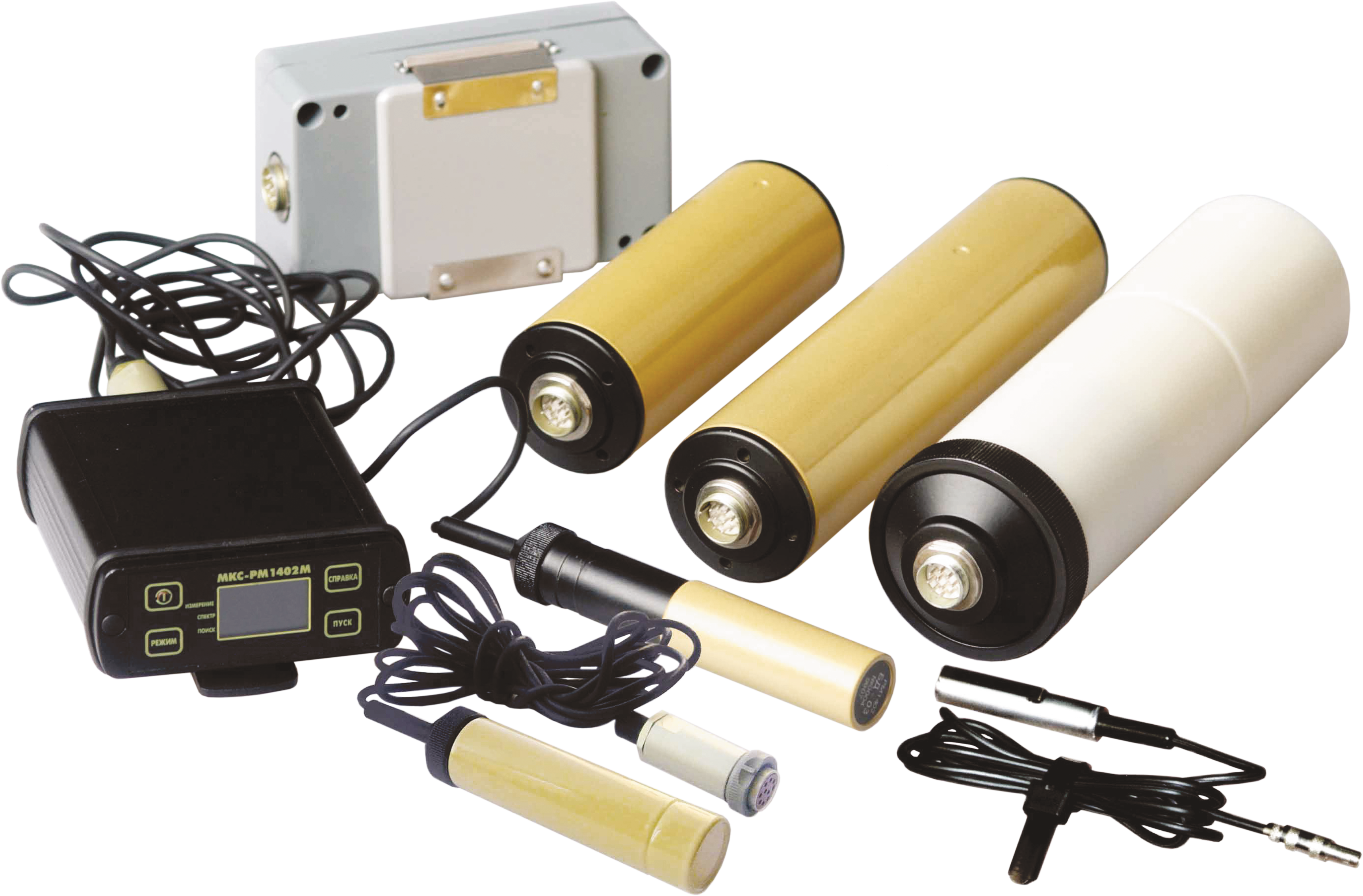 Дозиметр-радиометр МКС-РМ1402М состоит из блока обработки и выносных блоков детектирования, которыми прибор комплектуется по требованию заказчика.