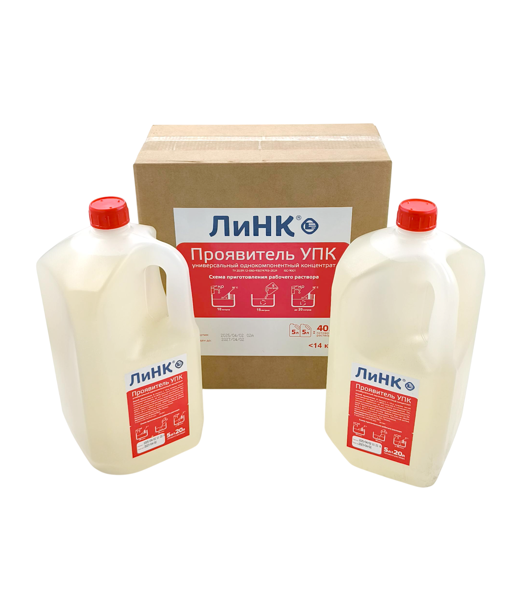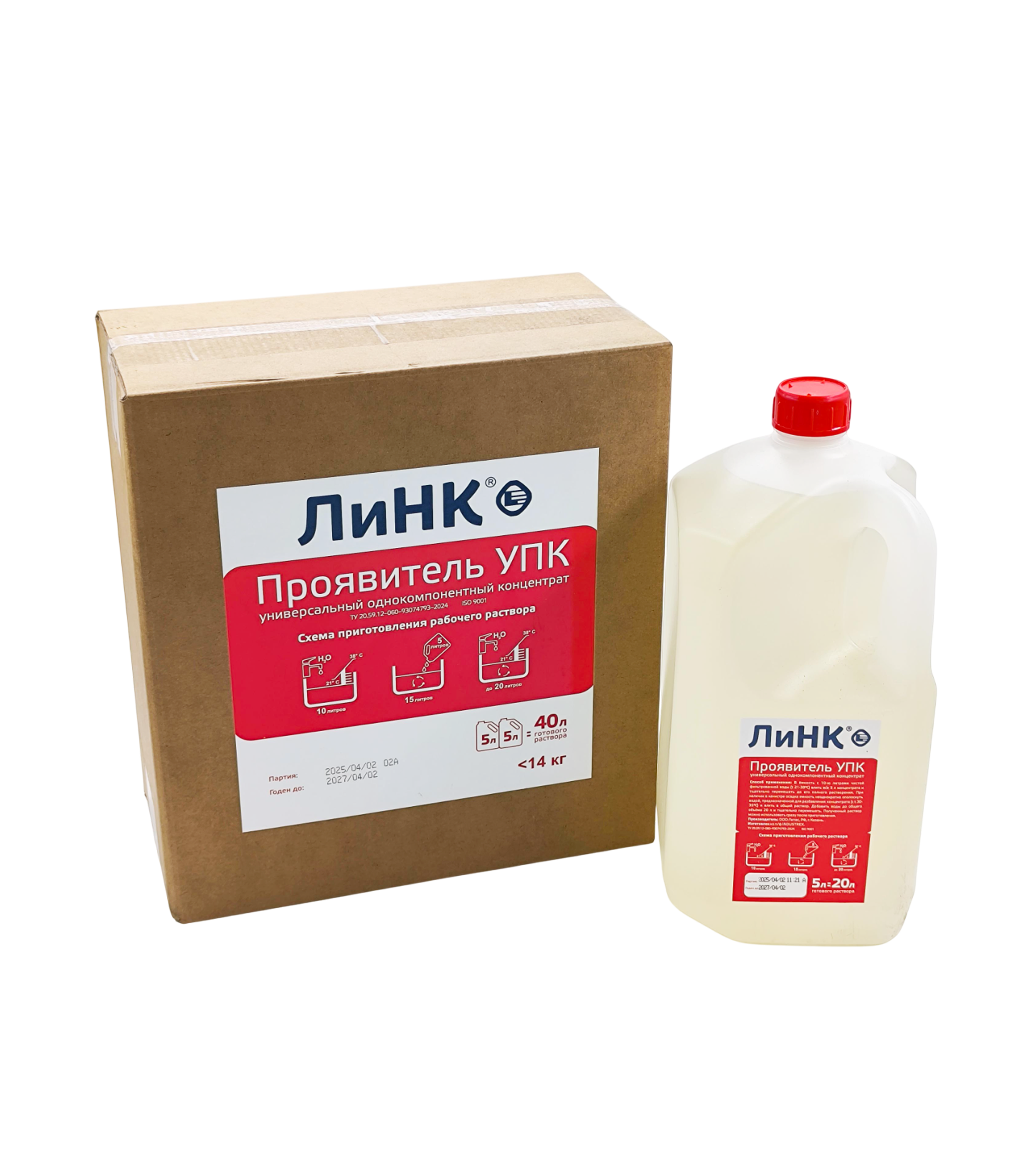 Порядок разведения концентрата проявителя ЛиНК УПК: в ёмкость с 10-ю литрами воды, прошедшей водоподготовку, например, дистилляцию, кипячение или фильтрование, (температура воды от +10 °С до + 30 °С) влить 5 л концентрата проявителя, тщательно перемешать, после чего необходимо добавить в получившийся раствор такую же воду до общего объема в 20 литров. Размешивать около 2 мин. до образования однородного раствора. Упрощенная инструкция также нанесена в виде мнемонического изображения на упаковку.