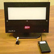 - Снабжен накладной маскорй для просмотра пленок определенного формата, манипулятором «педаль», плавной регулировкой яркости свечения экрана.