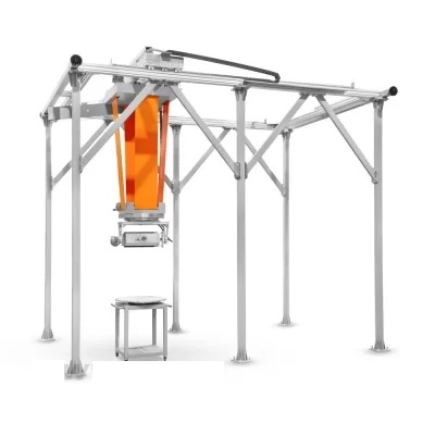 Пульт управления рентгеновским аппаратом выносится за пределы стационарной камеры. Манипулятор перемещает узел крепления с установленным излучателем рентгеновского аппарата по трем осям: X, Y и Z. Перемещения излучателя рентгеновского аппарата по вертикальной оси (Z) и горизонтальным осям (X и Y) автоматизированы. Вертикальное перемещение узла крепления с установленным излучателем рентгеновского аппарата производится с использованием трехслойных армированных лент ПВХ.