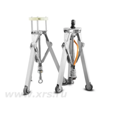 Тележка состоит из двух частей, которые устанавливаются с обоих концов блока излучателя рентгеновского аппарата. Передняя часть тележки фиксируется на излучателе путем стягивания пластикового хомута тележки. Задняя часть крепится к блоку шестью винтами М5 × 8, входящими в комплект поставки. К рым-болтам крепится трос, с помощью которого тележка и рентгеновский аппарат протягиваются внутри исследуемой трубы.