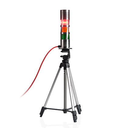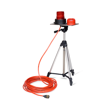 Красный световой сигнал, сопровождаемый звуковым сигналом, на панели с кабелем 20 м. Может быть установлен на магнитное основание или штатив.