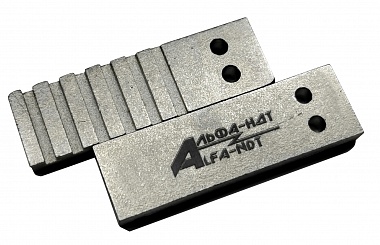 Канавочные эталоны (ЭЧК) применяются для оценки чувствительности радиографического контроля. Оценка чувствительности проводится путем сравнения потемнений на радиографическом снимке с размерами эталонных канавок. Эталоны изготовлены по ТУ 102-372-84. Первичная калибровка ЭЧК регламентирована методикой МИ 564-84.