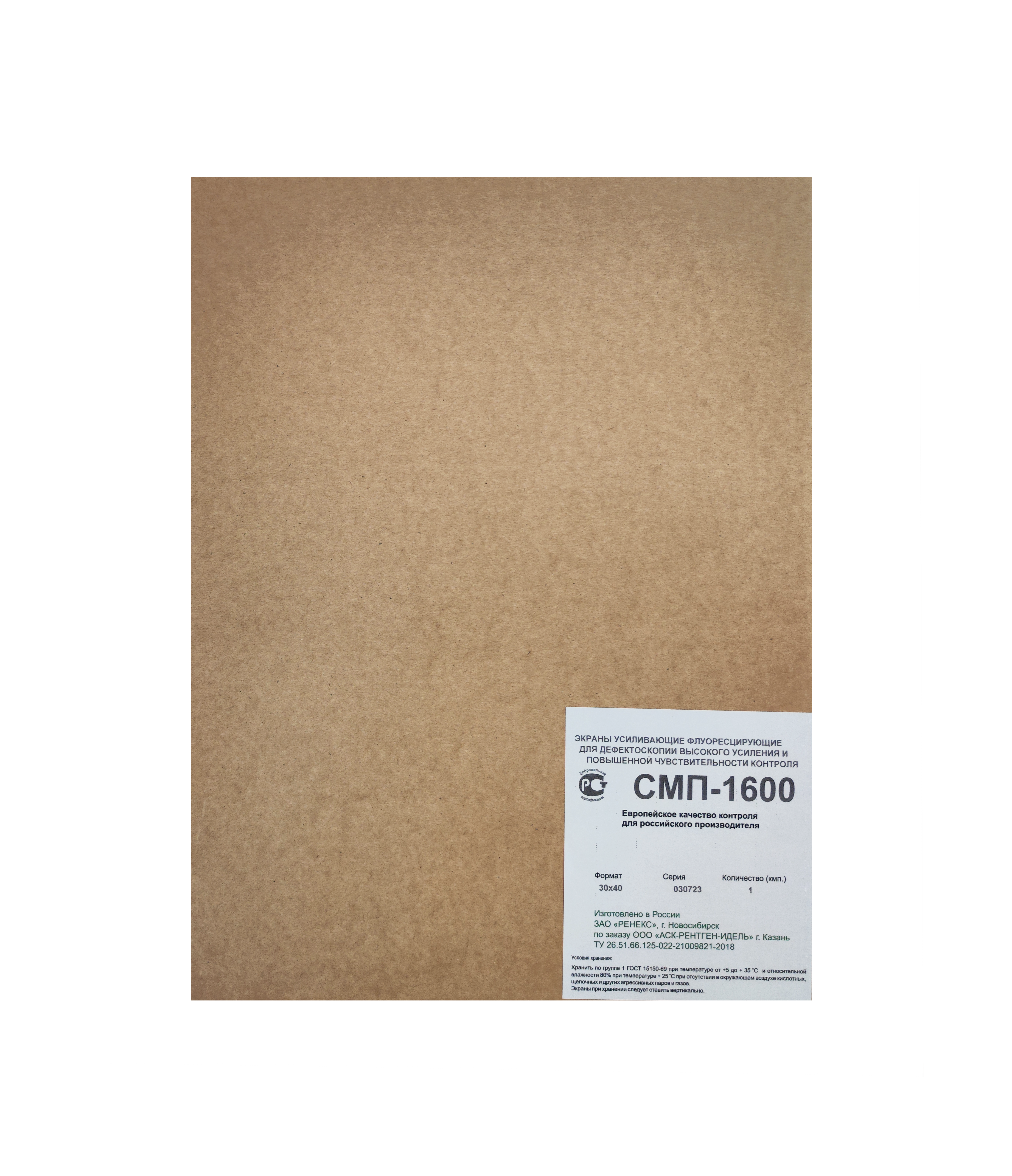 Экраны усиливающие флуоресцирующие для дефектоскопии высокого усиления и повышенной чувствительности контроля «СМП-1600» предназначены для максимального сокращения времени экспозиции при обеспечении высокой детальной чувствительности (класс 1 по ГОСТ 7512-82) при проведении промышленной рентгеновской дефектоскопии с использованием технической радиографической пленки.