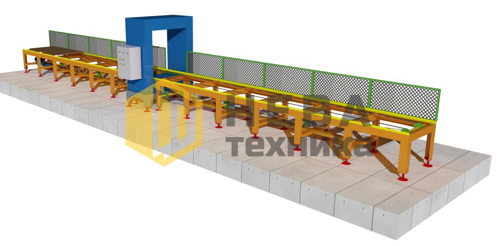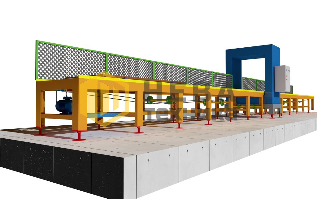 Перемещение размагничиваемых изделий через соленоид осуществляется при помощи тележки с электроприводом. Тележка размещается на опорной раме, грузоподъемность тележки может составлять до 3000 кг, вылет тележки — 5000 мм с каждой стороны соленоида. В случае необходимости размагничивания деталей при поточном производстве, комплекс может быть оснащен ленточным конвейером. Это обеспечивает непрерывное размагничивание без нарушения технологического процесса.