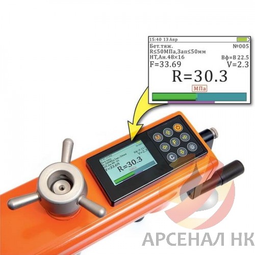 - Для работы с высокопрочными бетонами существенно доработана конструкция прибора: использовано запатентованное решение с двумя приводными гидроцилиндрами, редуктором и двумя силовыми опорными цилиндрами, создающими диапазон нагрузок до 100 кН