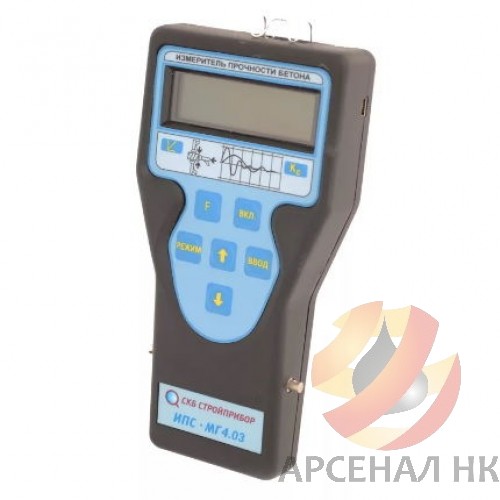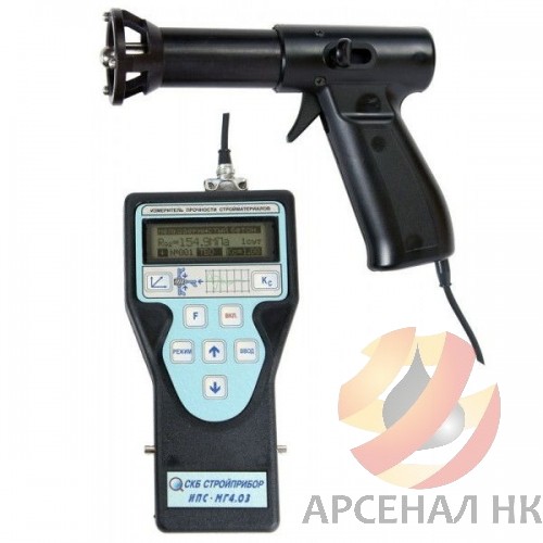 Измеритель прочности бетона ИПС-МГ4.03 служит для контроля прочности бетонных конструкций (монолитных, сборных, железобетонных), а так же для контроля кирпича и керамических изделий. В основе лежит метод ударного импульса, измерение ускорения при постоянной энергии удара равной 0,12 Дж (т.е. определенная зависимость между прочностью образцов в лабораторных условиях и прочность исследуемого образца).