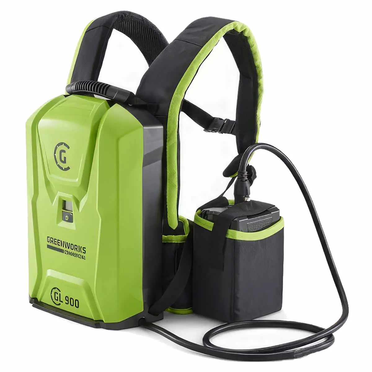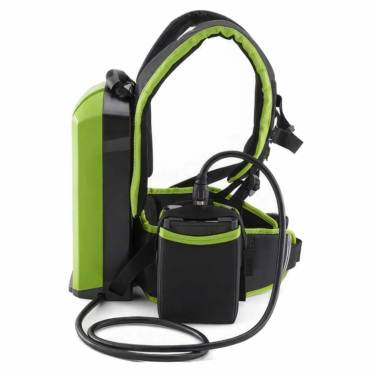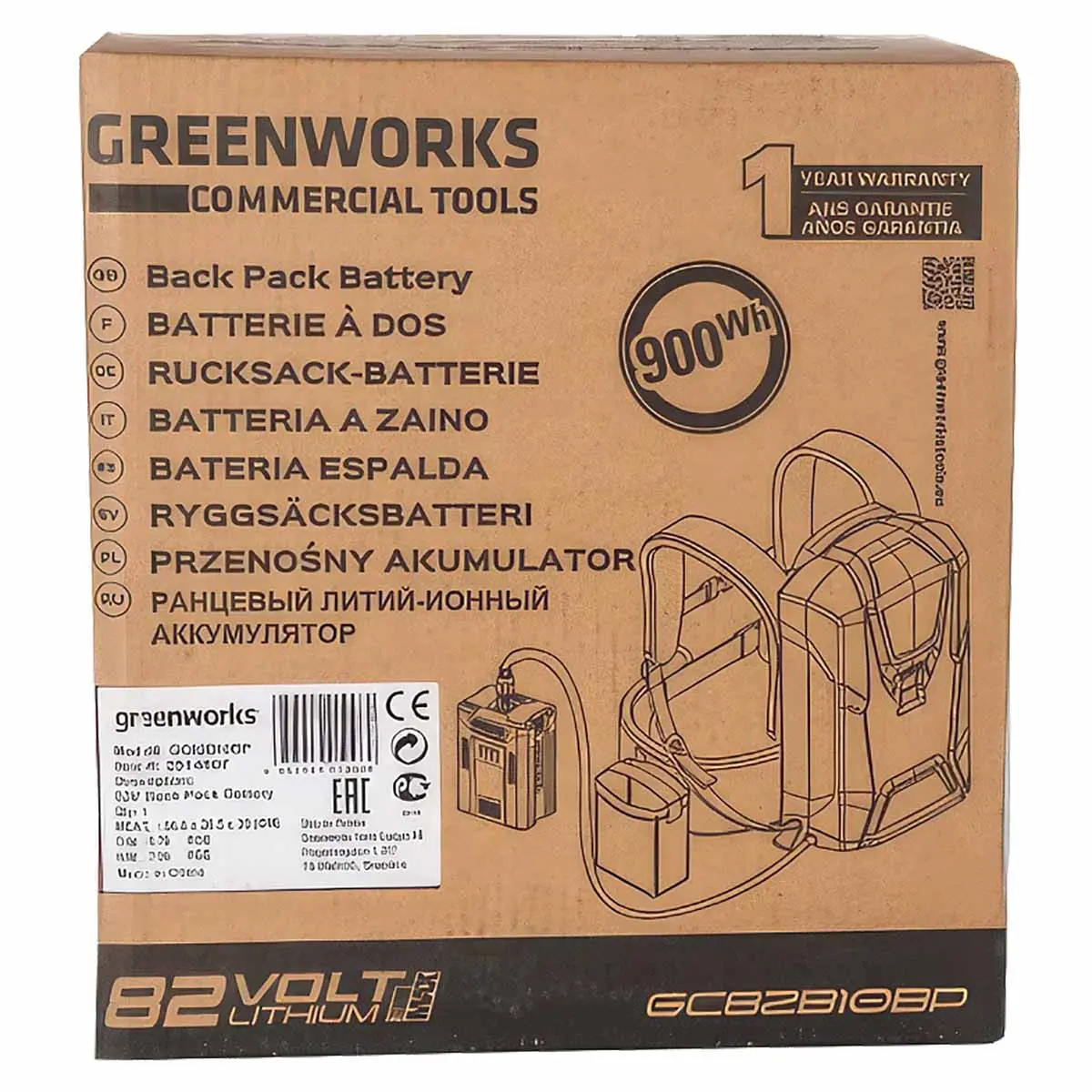 Ранцевый аккумулятор Greenworks GC82B10BP 82V 12.5 А.ч из серии 82V Commercial - это современная высокотехнологичная литий ионная (Li-ion) батарея, выполненная в виде ранца, одеваемого на лямках на спину, а подключение производится при помощи специального переходника (в комплекте).