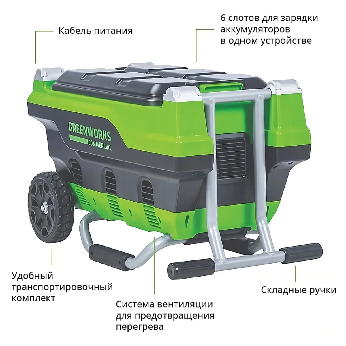 Особенности зарядного устройства для 6 аккумуляторов Greenworks G82CT6 82V на 6 АКБ