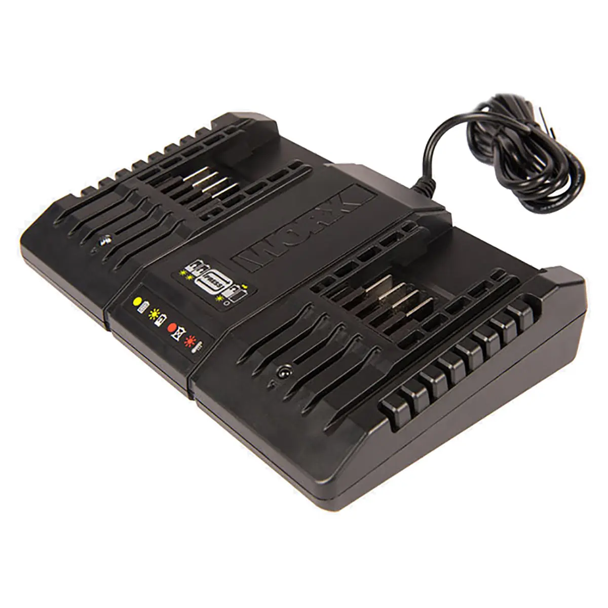 Двойное зарядное устройство WA3869 – это незаменимое дополнение вашего инструментария WORX. Устройство совместимо со всеми аккумуляторными батареями Powershare 20В и позволит сэкономить время при зарядке двух батарей.