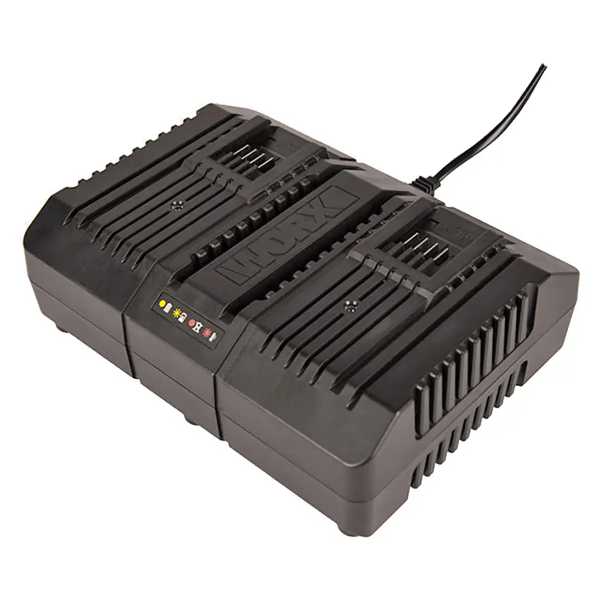 Зарядное устройство WA3883 позволяет одновременно восстанавливать емкость сразу двух аккумуляторных батарей WORX Powerhare 20 В. Двойная зарядка является незаменимым устройством для вашего инструментария WORX.