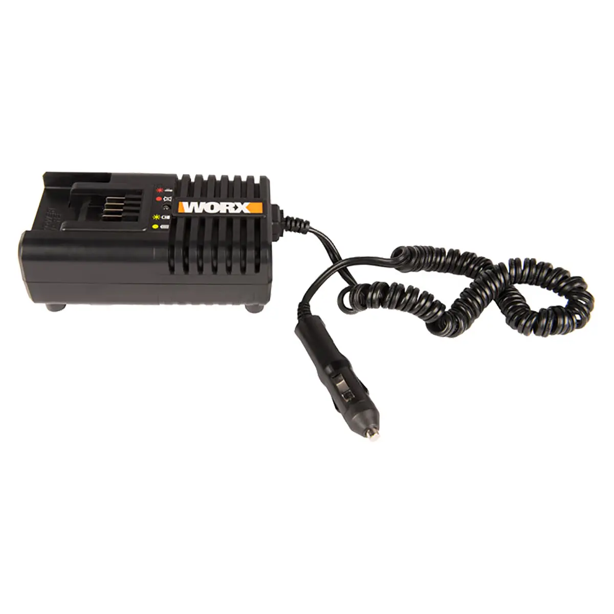 Зарядное устройство автомобильное WORX WA3765 питается от автомобильной сети 11-26 В, что позволяет зарядить универсальный аккумулятор WORX Powershare 20 В вдали от электросети или прямо в дороге.