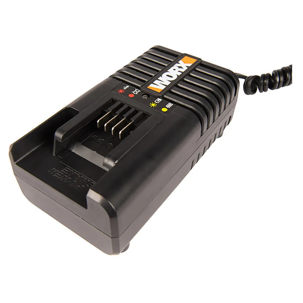 WORX WA3765 имеет выходной ток 2 A, потребляет 50 Вт и позволяет восстановить емкость аккумуляторной батареи 4 Ач всего за 120 минут. При зарядке аккумулятора 2 Ач, время зарядки сократиться до 1 часа.