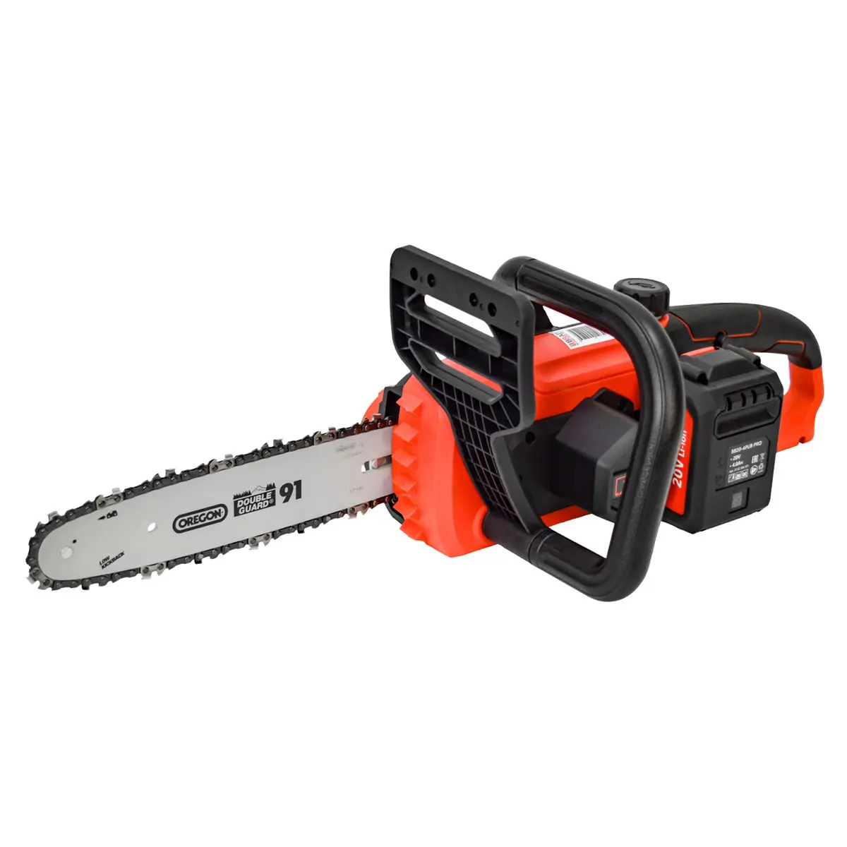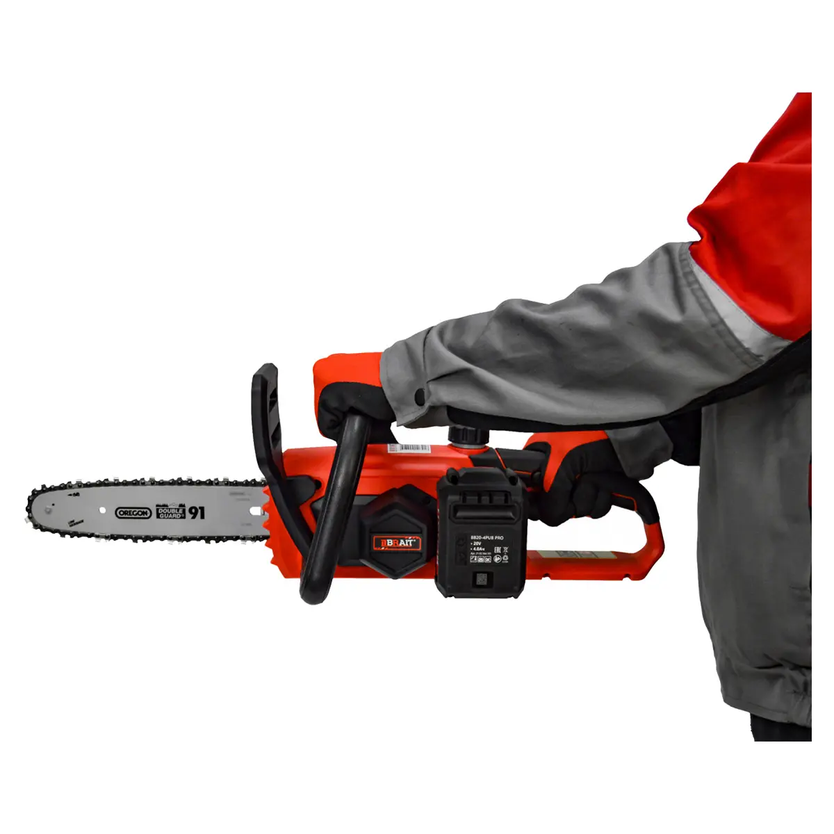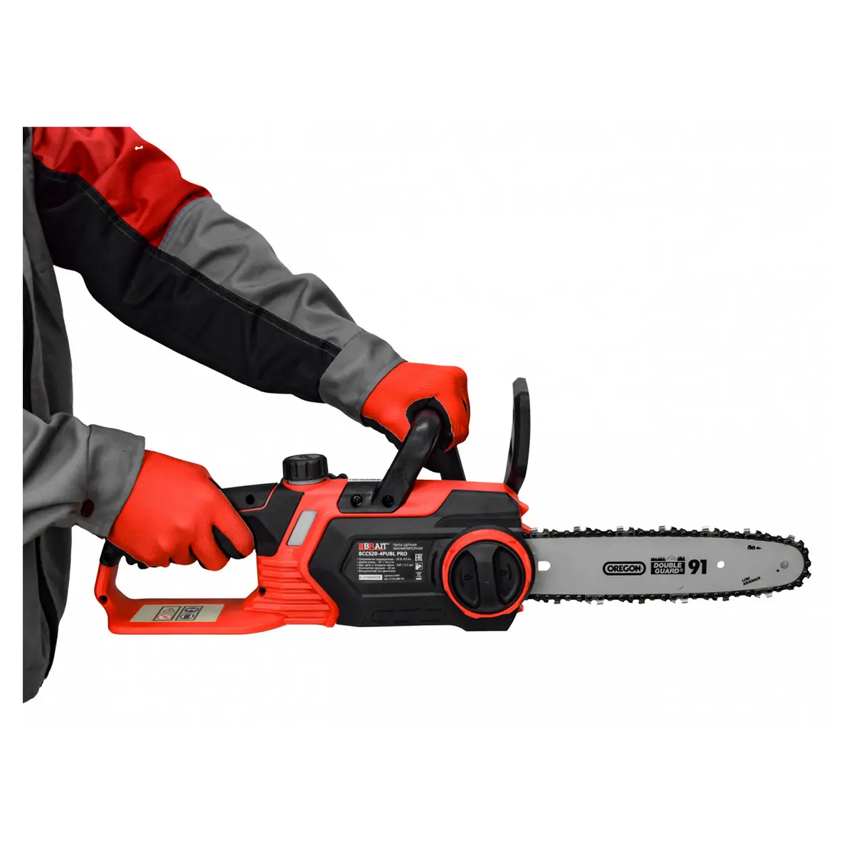 BRAIT BCCS20-4PUBL PRO, с АКБ 4Ач + ЗУ обладает прорезиненной рукояткой, которая обеспечивает удобный захват и предотвращает скольжение инструмента во время работы. Длина шины составляет 10 дюймов (25.4 см) с цепью из 45 звеньев, обеспечивая оптимальную производительность и точность распила. Автоматическая система смазки цепи гарантирует долгий срок службы инструмента.