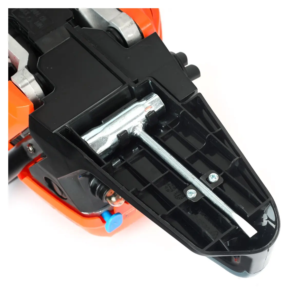 Для удобства и быстрой настройки цепи, бензопила оснащена боковым натяжителем цепи, что делает процесс обслуживания более простым и эффективным.