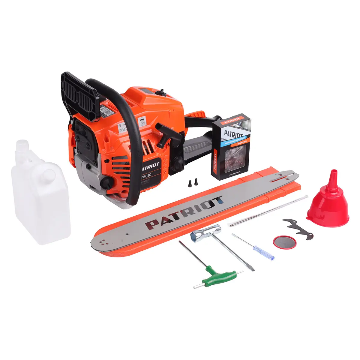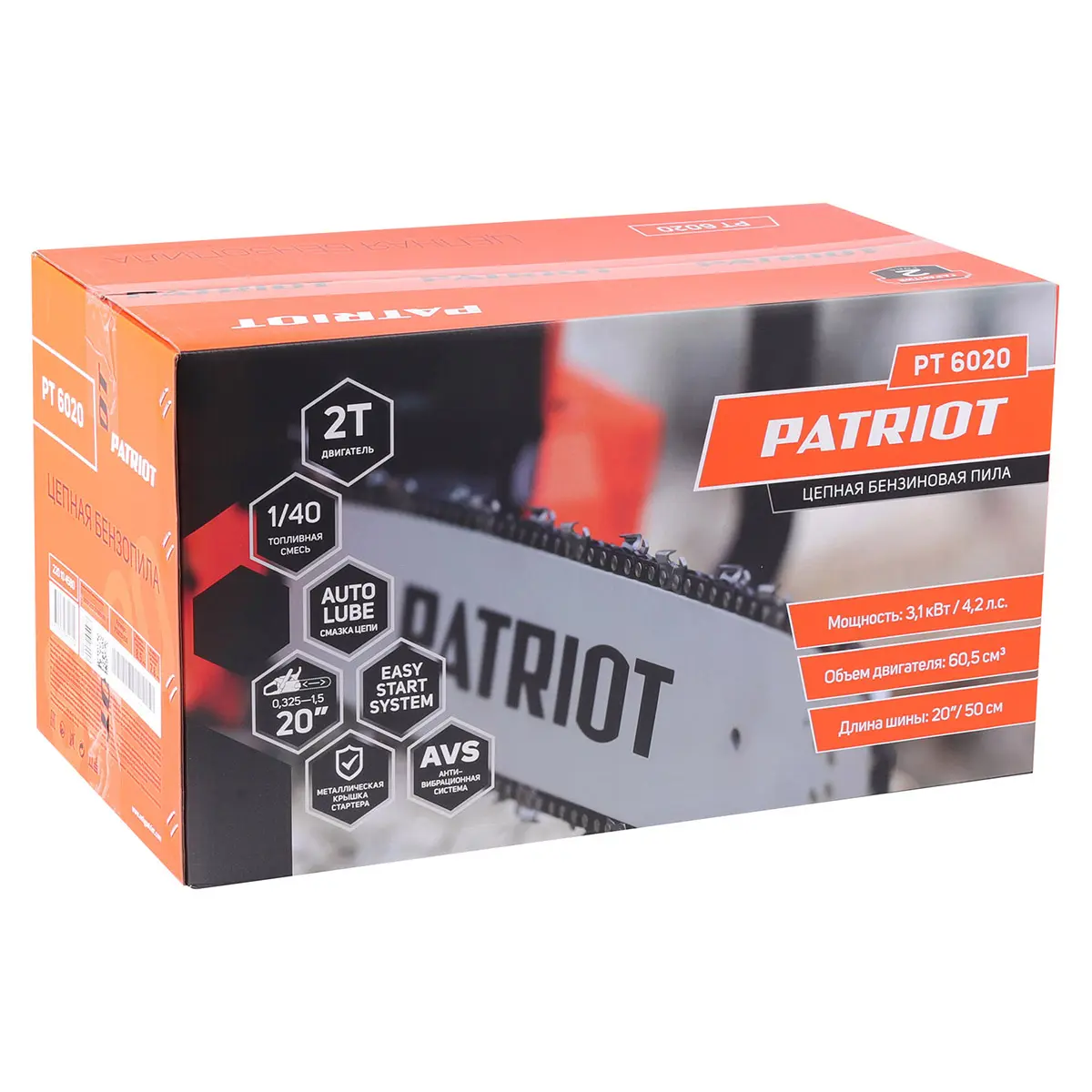 Пила цепная бензиновая Patriot PT 6020 - это надежный помощник для работы с деревьями крупного диаметра, сухими ветками и сучьями. Обладая мощностью в 4,2 лошадиных силы, эта двухтактная бензопила предназначена для выполнения различных задач, начиная от заготовки дров и заканчивая распиловкой стволов и строительных материалов.