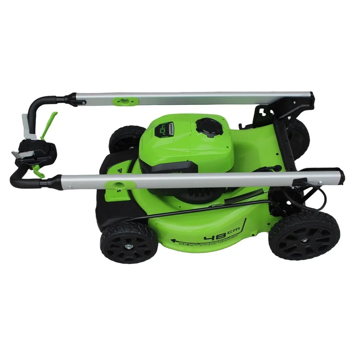 Аккумуляторная газонокосилка Greenworks GD40LM48SP бесщеточная, 40V с АКБ 4 А.ч. USB, без ЗУ оснащается ножом наибольшей длины среди самоходных косилок 40-вольтовой линейки, благодаря чему обладает высокой производительностью. За счет полностью переработанной конструкции, по сравнению с ранее выпускавшимися моделями, существенно повышен комфорт работы с газонокосилкой , что позволяет осуществлять стрижку травы без особого труда.