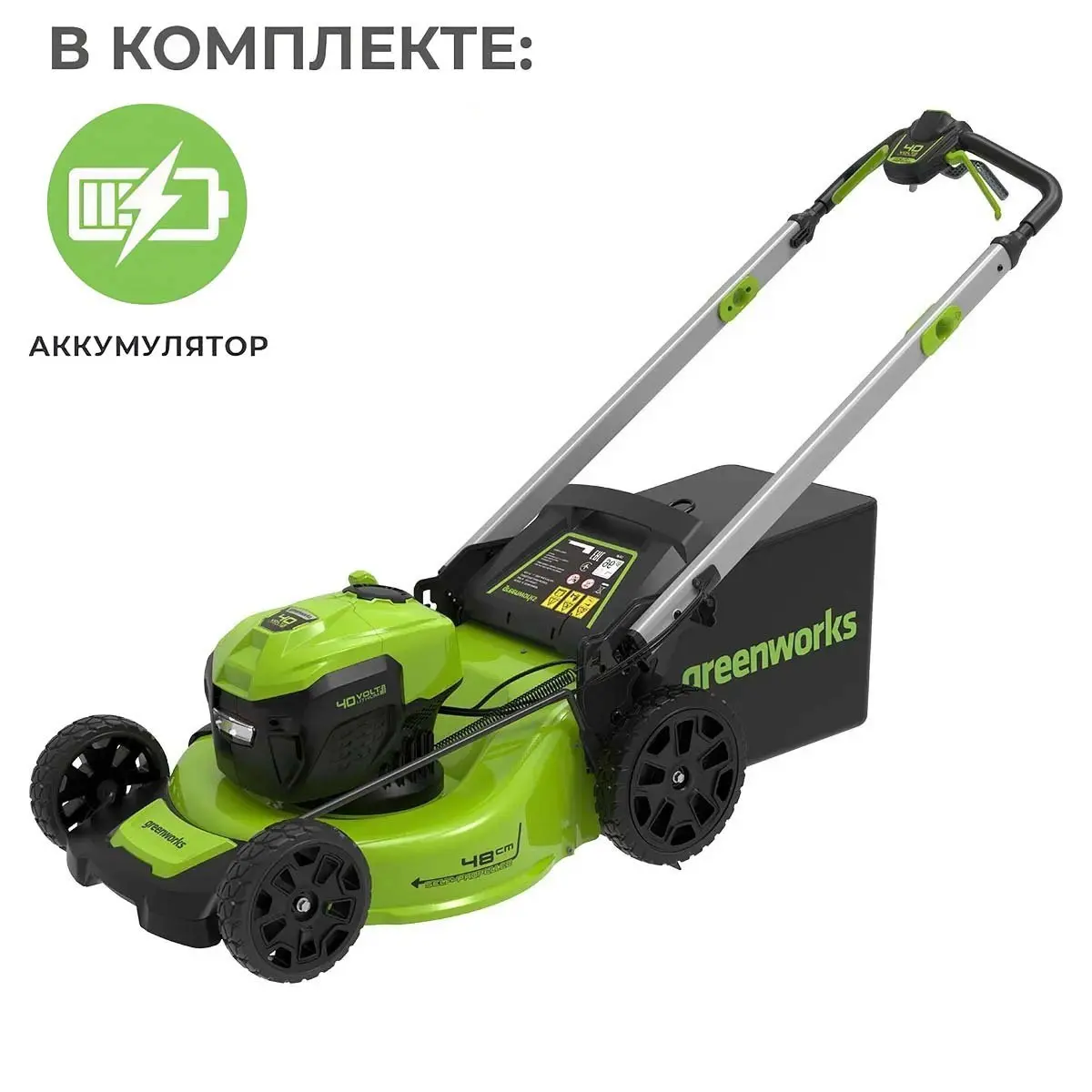 Аккумуляторная газонокосилка самоходная Greenworks GD40LM48SP бесщеточная, 40V с АКБ 8 А.ч., без ЗУ