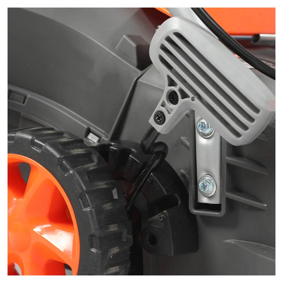 - Широкие колеса, который обеспечивают высокую проходимость и не порвеждают газон.