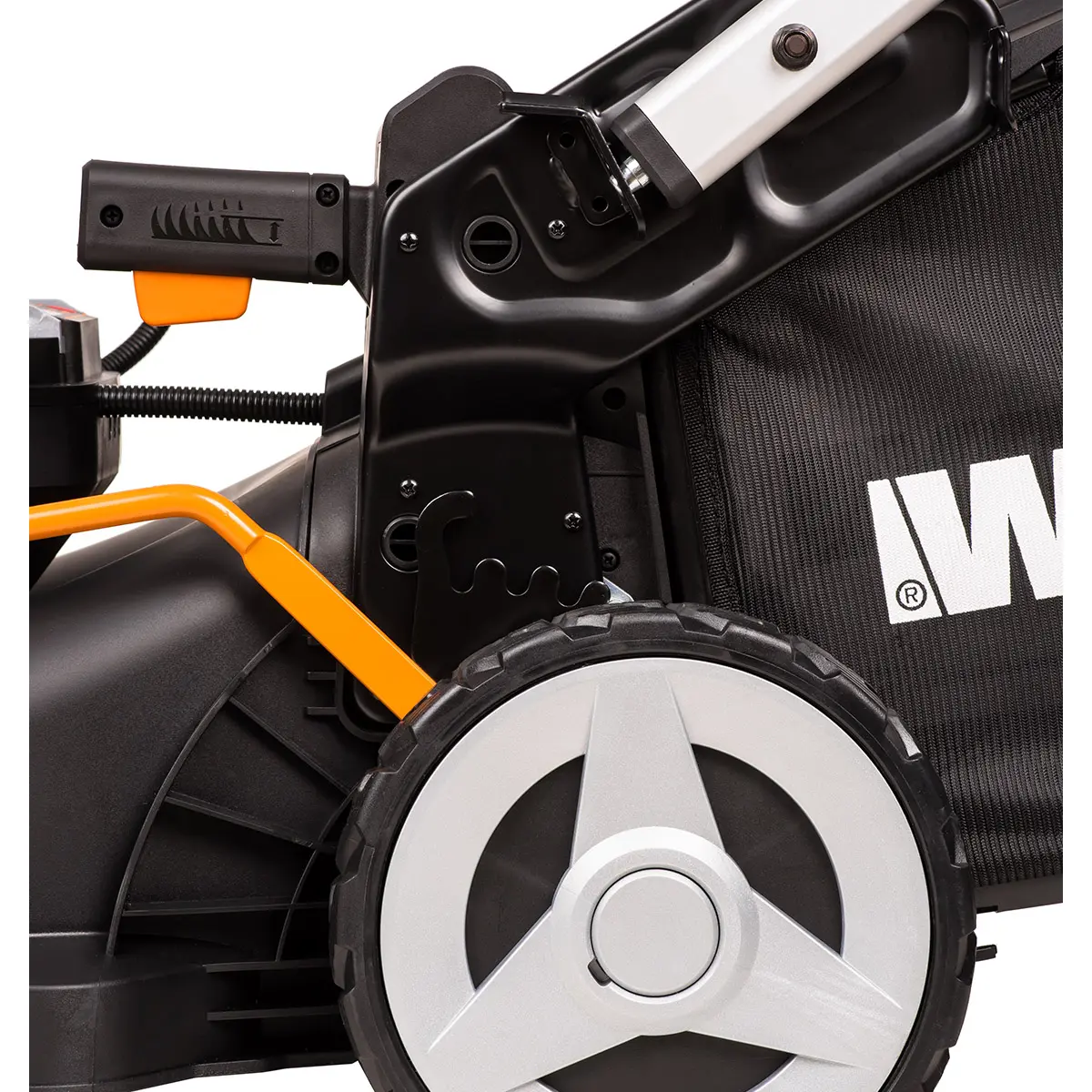 Газонокосилка Worx WG749E оснащена вместительным травосборником объемом 55 литров с индикатором заполнения, что избавляет от необходимости частого опустошения. Кроме того, имеется индикатор уровня заряда, который позволяет отслеживать состояние батареи аккумуляторной косилки для травы WORX WG749E и вовремя его менять.