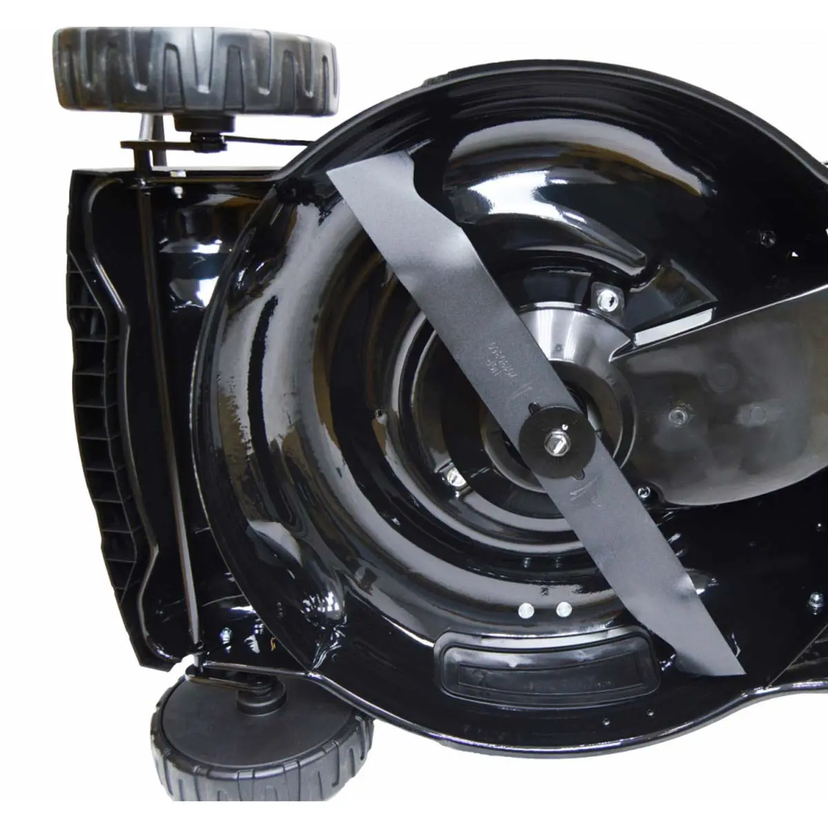 Техника оснащена приводом на задние колеса. Это означает, что вам не придется прилагать значительных усилий для продвижения косилки по участку. Она едет самостоятельно, что значительно снижает физическую нагрузку на пользователя. Это особенно удобно при обработке больших площадей.