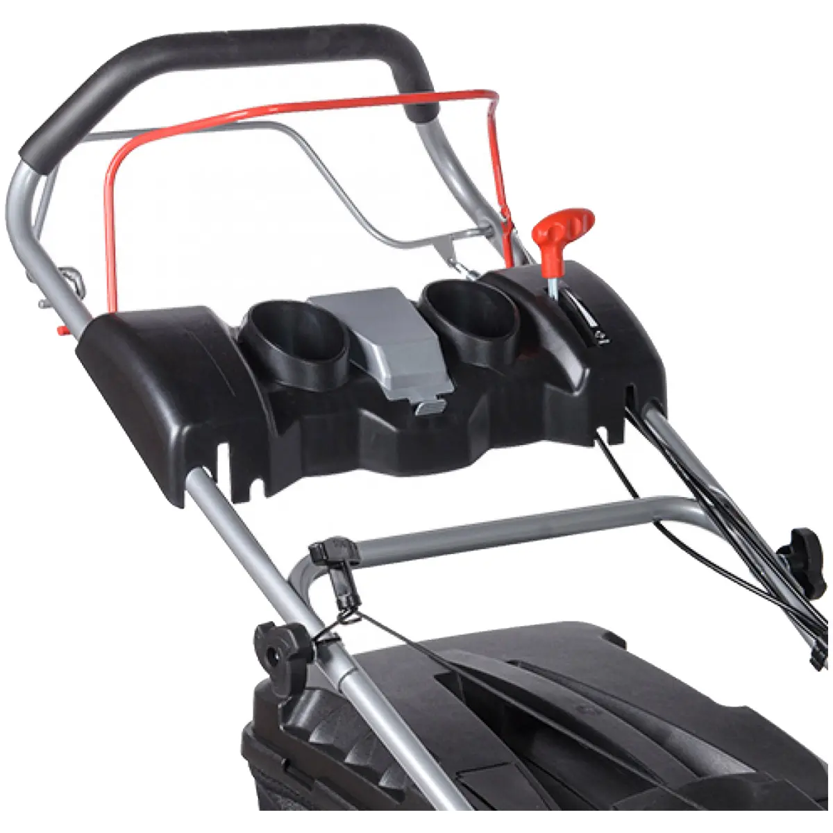 Техника имеет центральную регулировку высоты стрижки, что позволяет одним рычагом устанавливать уровень, приподнимая все 4 колеса. Доступно 8 ступеней регулировки в диапазоне от 30 до 80 мм.