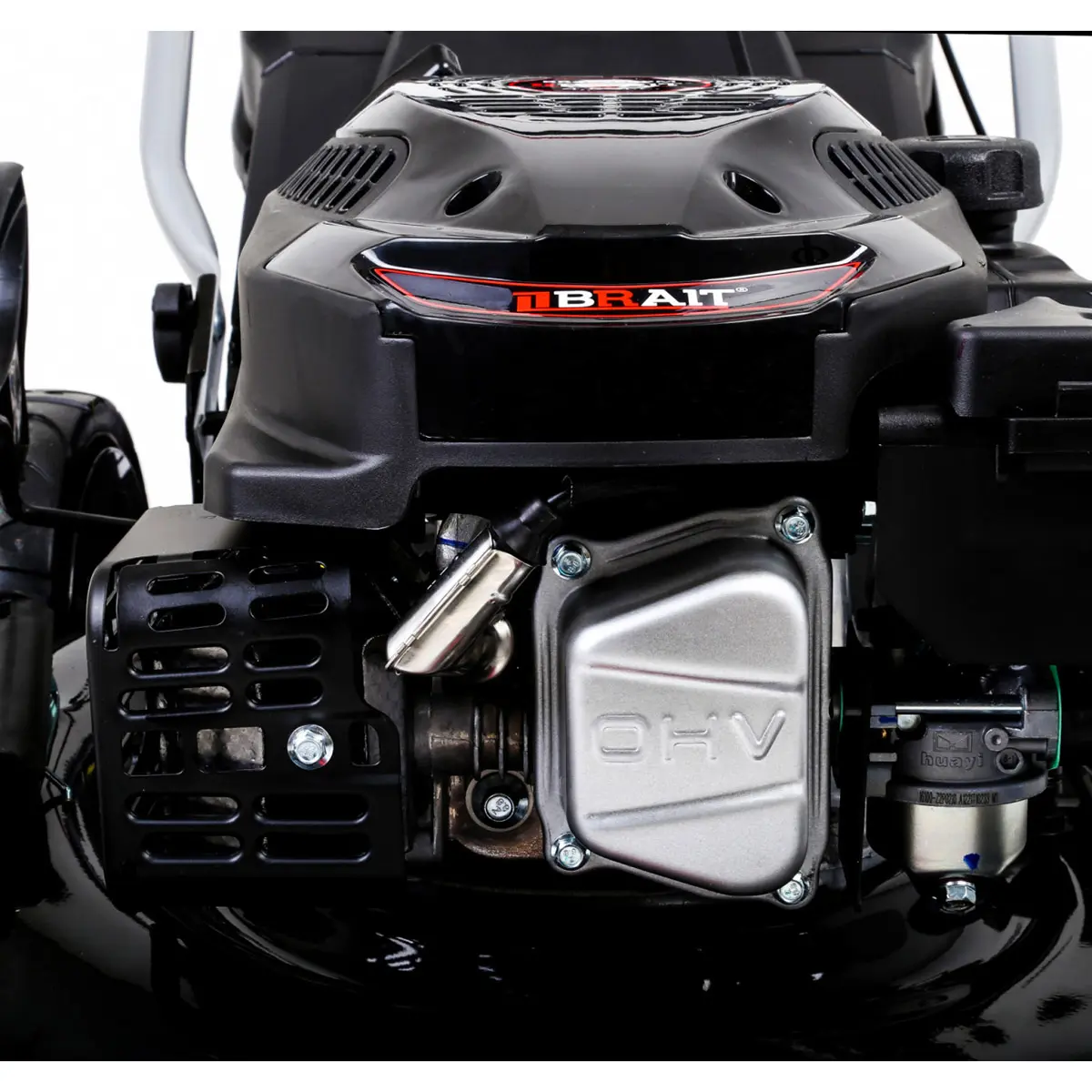 Бензиновую косилку для травы BRAIT BR4546SPM можно практически мгновенно очистить от травы. Все, что нужно сделать - подключить садовый шланг к штуцеру на деке, включить подачу воды и запустить движение ножа.