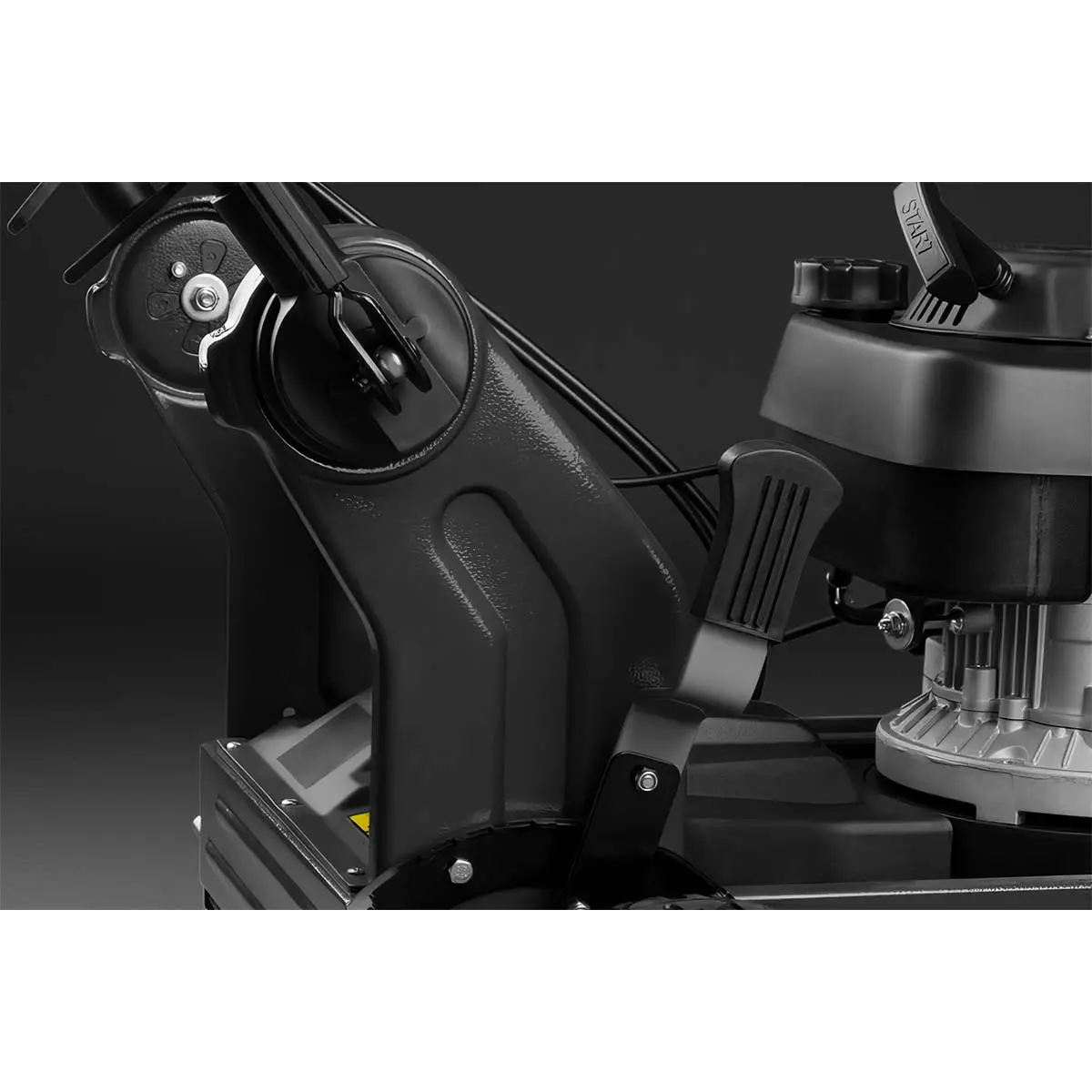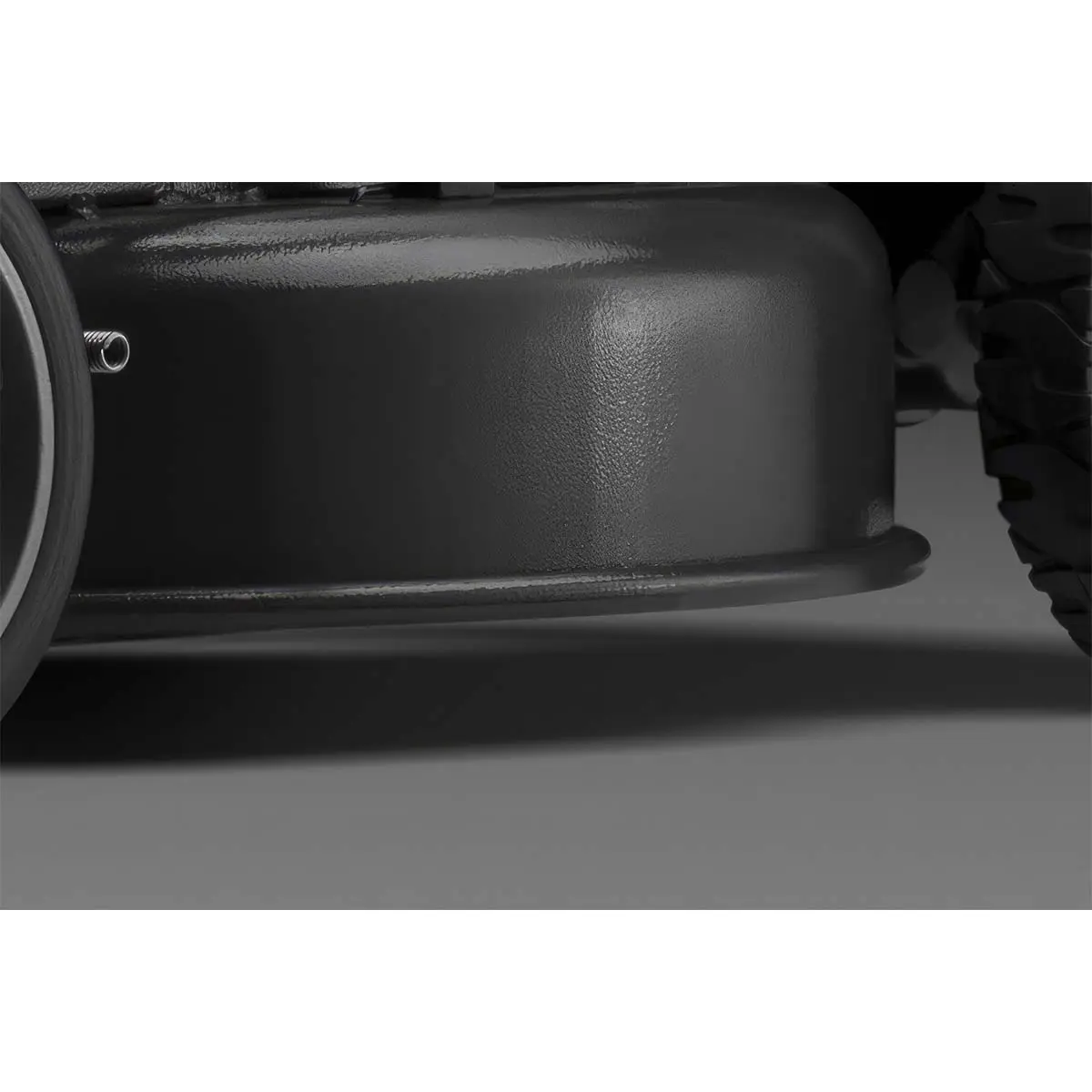 Дека этой модели имеет молотковое покрытие, которое в три раза прочнее краски, используемой на обычных косилках. Это покрытие обеспечивает высокую устойчивость к механическим повреждениям, царапинам и воздействию влажности, что продлевает срок службы оборудования.