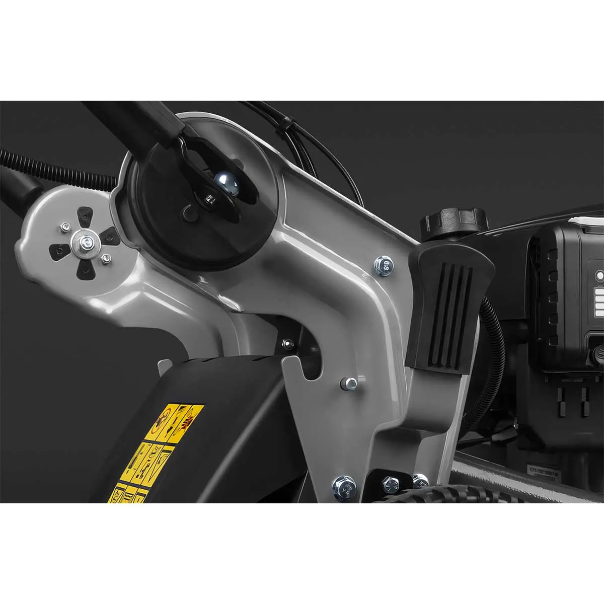 Одной из ключевых особенностей газонокосилки является вариатор, который обеспечивает бесступенчатую регулировку скорости. Это позволяет легко управлять агрегатом на участках любой сложности, включая склоны. Вы сможете легко подстроить скорость движения под свои потребности, что делает работу с оборудованием более комфортной и эффективной.