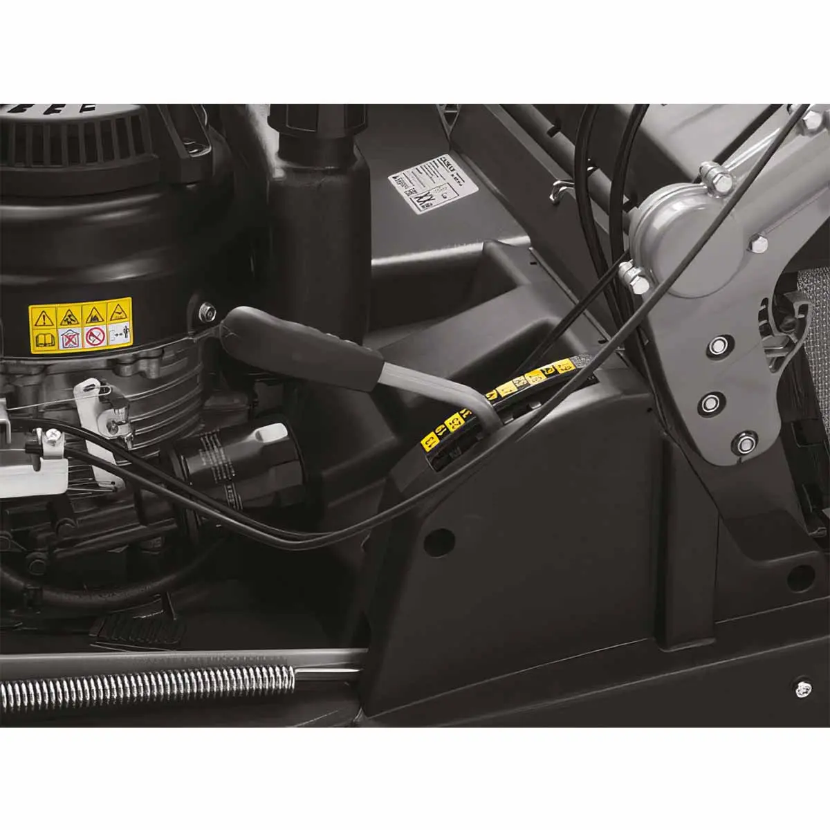 Мотор косилки отличается высокой износостойкостью и компактностью. Он легкий и имеет верхнее расположение клапанов, что обеспечивает более эффективную работу. Кроме того, благодаря чугунной гильзе цилиндра, этот двигатель обладает повышенной прочностью. Для удобного запуска модель оснащена ручным стартером с системой автоматической декомпрессии, что значительно облегчает пуск и уменьшает нагрузку на пользователя.